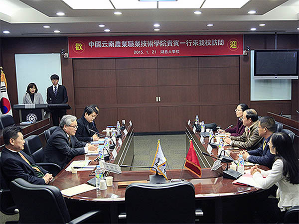 2014年1月19日至1月23日,beat365官网以何明东副院长为团长,对外交流合作处处长凌军、经济管理学院院长谭琳、工程学院院长李一源和基础教学部副主任李憬一行五人赴韩国访问。考察团先后对韩国京畿大学校、韩国翰林大学校、韩国湖西大学校、韩国光州女子大学校和韩国国立江原大学校五所学校进行了交流访问。