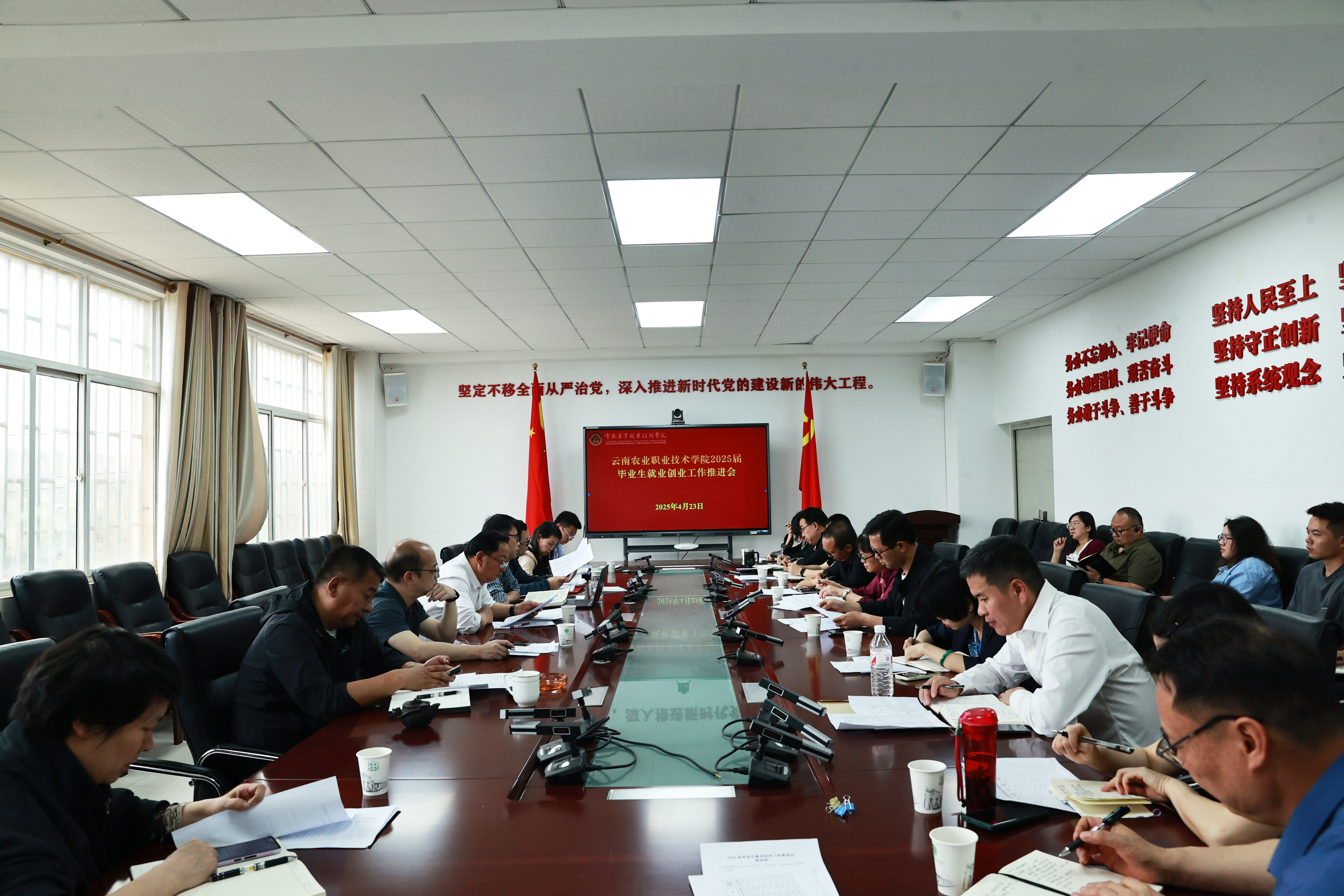 会议通报前期学校毕业生就业创业工作情况。陈太安校长传达学习全国和全省高校毕业生等青年就业创业工作视频会议精神及相关文件要求。他强调,要建立“招培就联动机制”,根据市场需求动态调整专业设置,深化产教融合,精准对接云南省“3815”战略发展目标与12个重点产业需求,着力培养适应社会发展的复合型人才。