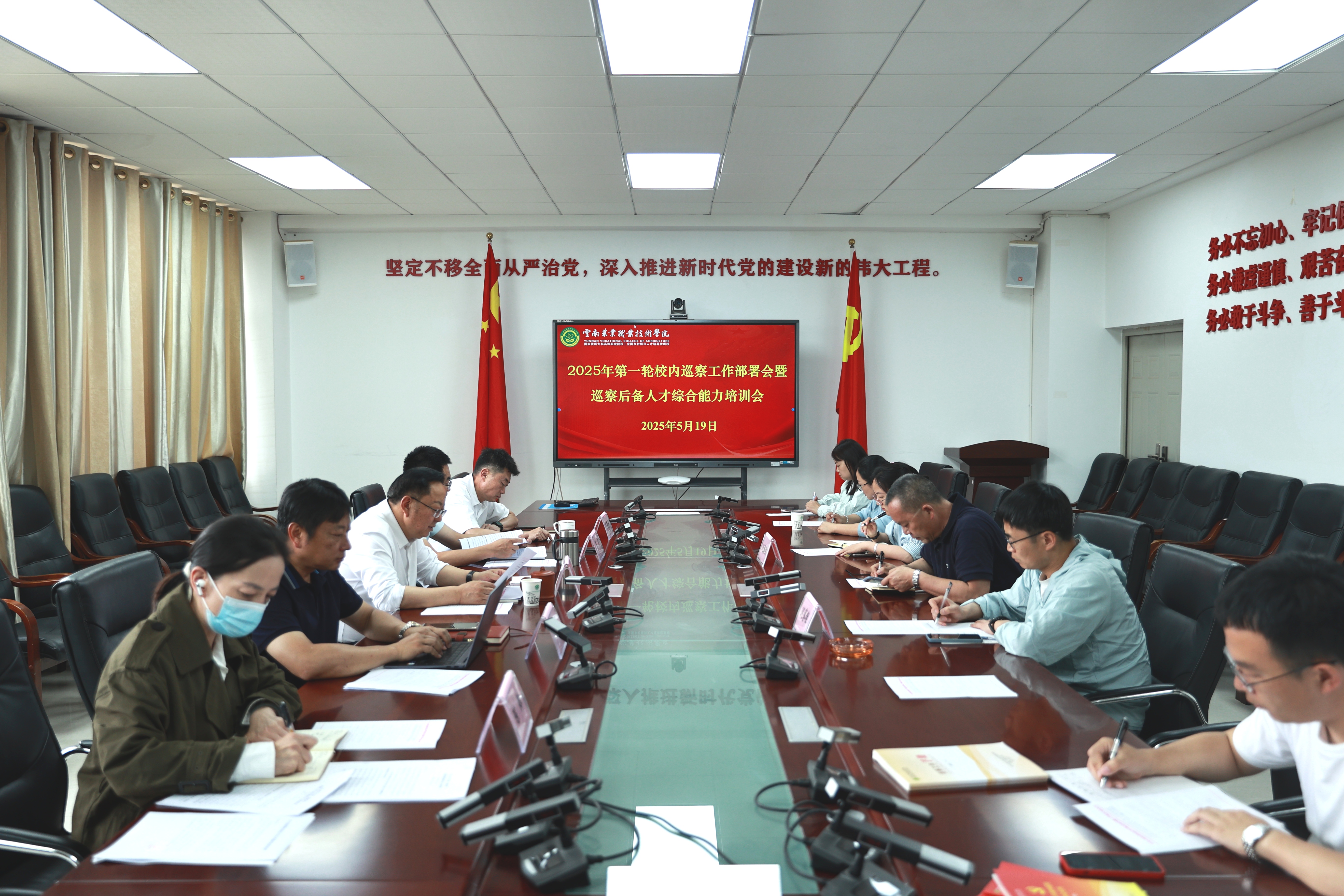 通知中心为深入贯彻落实全面从严治党要求,扎实推进校内巡察工作,5 月19日,学校在小哨校区四楼会议室召开2025 年第一轮校内巡察工作部署会暨巡察后备人才综合能力培训会。党委书记文俊,副校长杨涛,纪委书记柳勇,党委巡察办负责人,巡察组全体成员,以及二级党总支书记、副书记、纪检委员、组织员共同参会。