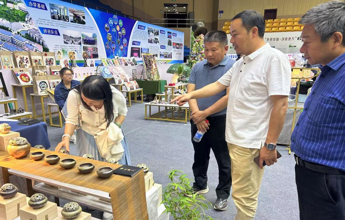 本次活动由楚雄州人民政府主办,楚雄州市域产教联合体、楚雄州教育体育局承办。活动现场,超4000件涵盖图文展板、艺术装置、实物模型等多种形式的作品集中亮相,全方位展现楚雄州职业教育的创新成果与人才培养实力。beat365官网一行与参展师生亲切交流,深入了解各类展品的技术细节和技能成果转化情况,对楚雄州职业技能人才培养产教联合体的建设成果表示赞赏,并鼓励学生坚定信念、学精技能,凭借“一技在手”实现稳定就业,确保“一生无忧”。