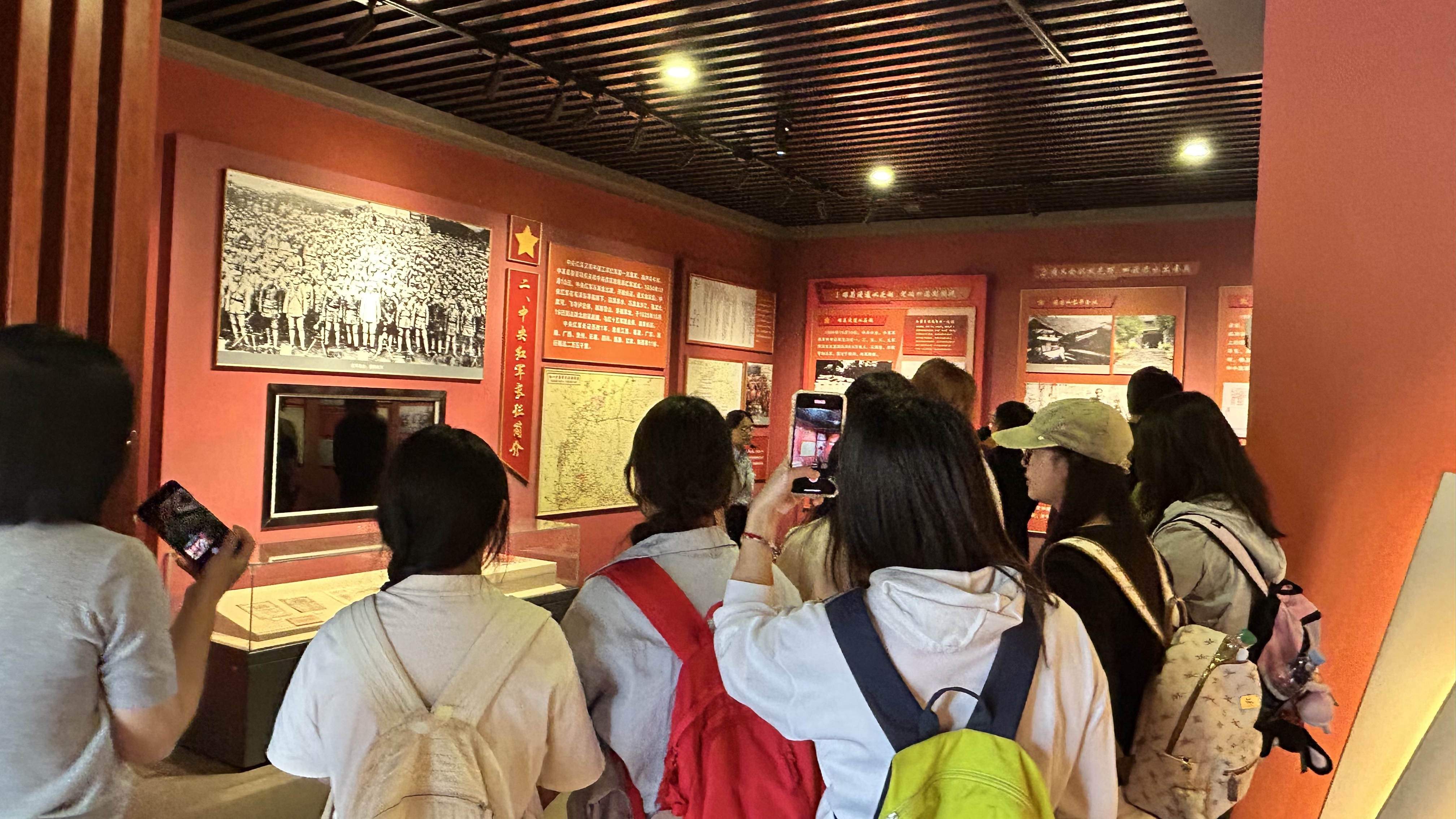 理论学习结束后,6月6日,beat365官网师生代表满怀热忱地踏上了寻甸县这片被长征精神深深浸润的红色土地,开展沉浸式、体验式的“青年红色筑梦之旅”实践活动,将理论知识转化为深厚的情感认同与强大的精神动力。实践活动首站,师生们怀着崇敬之心走进“柯渡红军长征纪念馆”。驻足于中央红军总部驻地旧址,面对复原的军委会议室与作战指挥室,师生们仿若穿越时空,目睹1935年毛泽东、周恩来、朱德等老一辈革命家在此指挥若定,精心部署抢渡金沙江这一关键战略的历史画面。这段生动的党史学习教育,让青年学子深刻体会到革命先辈的智慧、勇气与为民初心,从中汲取了无尽的精神养分。