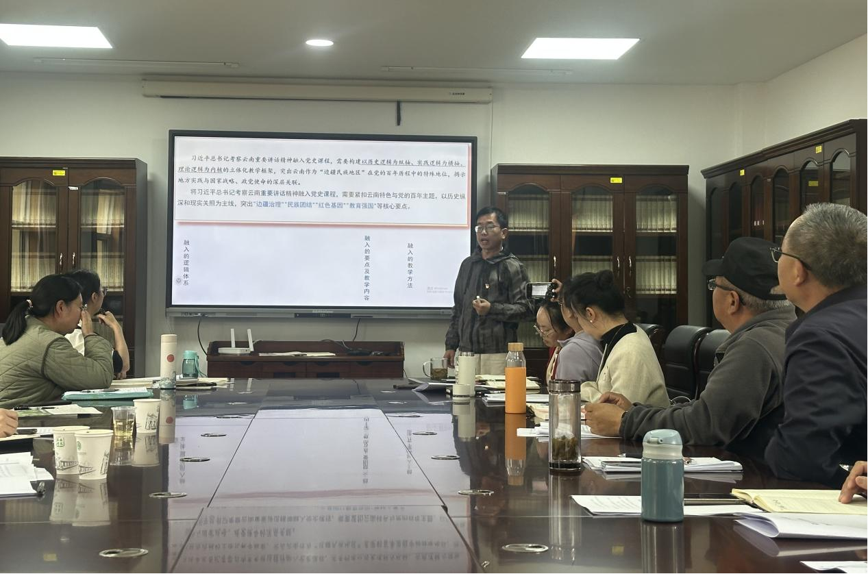 在集体备课研讨交流环节,各教研室主任结合自身丰富的教学实践,就习近平总书记考察云南重要讲话精神融入思政课展开了热烈讨论。