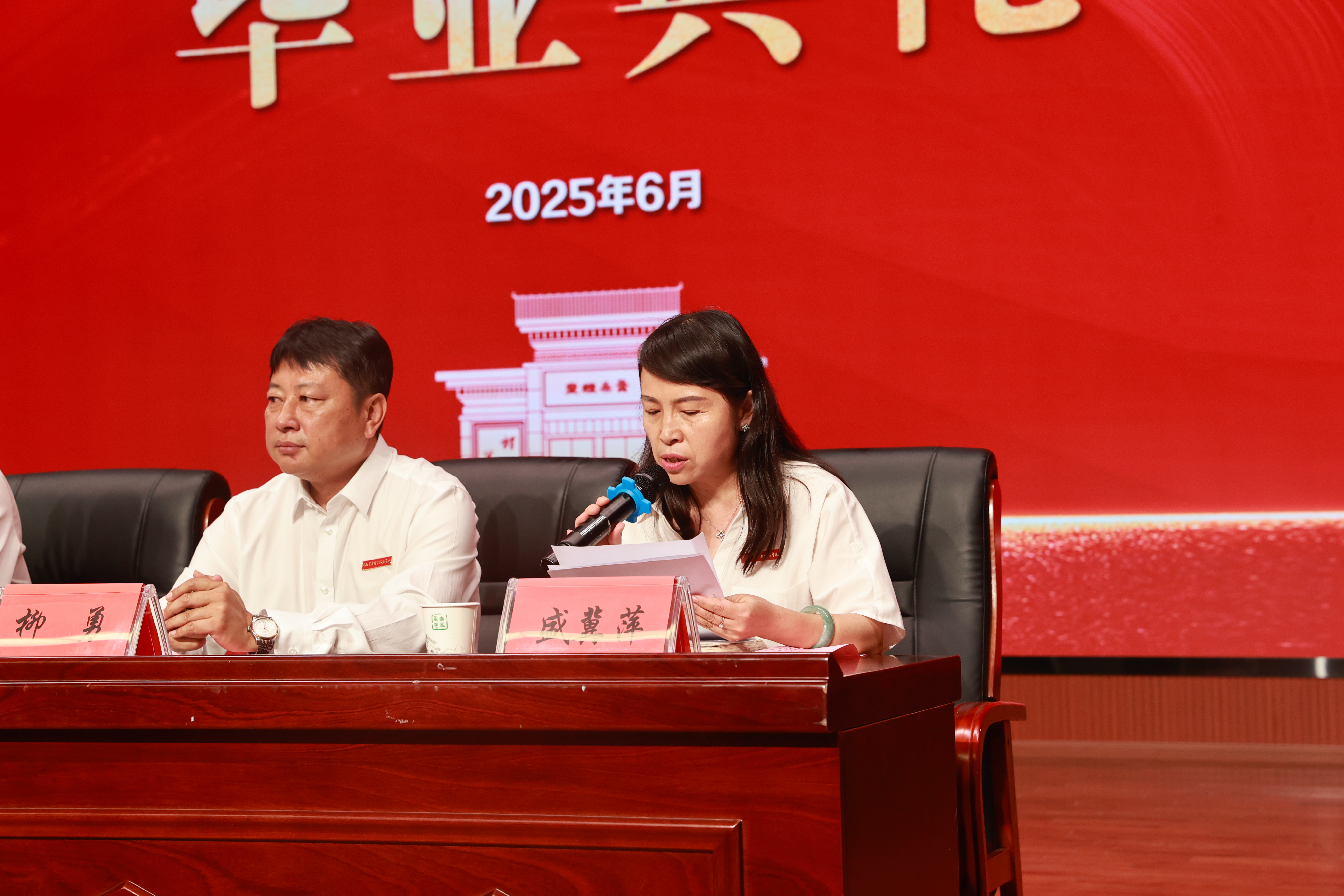 荣誉时刻,璀璨绽放。党委书记文俊宣读2025届毕业生省级表彰文件,给予了获得省级五好学生、省级优秀学生干部、省级先进班集体、省级优秀毕业生的学子和集体充分的肯定和祝福,主席台领导亲手为被表彰的学子颁发荣誉证书,台下掌声雷动,是对卓越的致敬,更是对榜样的礼赞。