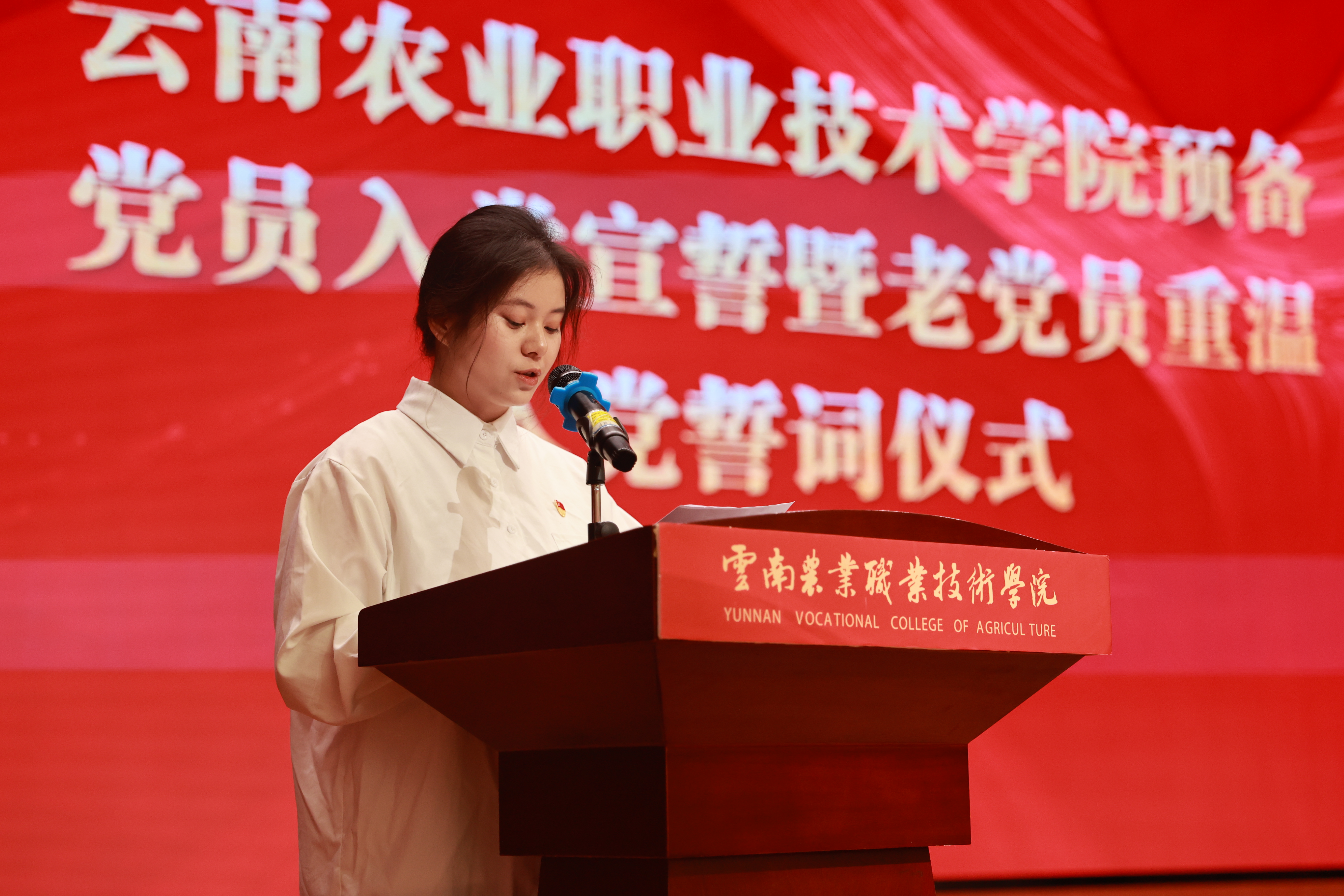来自农学与园艺技术学院23级烟草栽培与加工技术二班的预备党员王春兰作为新党员代表发言。她郑重表态,将坚定理想信念,筑牢思想根基;练就过硬本领,勇担时代重任;牢记党的宗旨,服务同学群众;严守党的纪律,锤炼高尚品格,以实际行动践行共产党员的初心和使命。