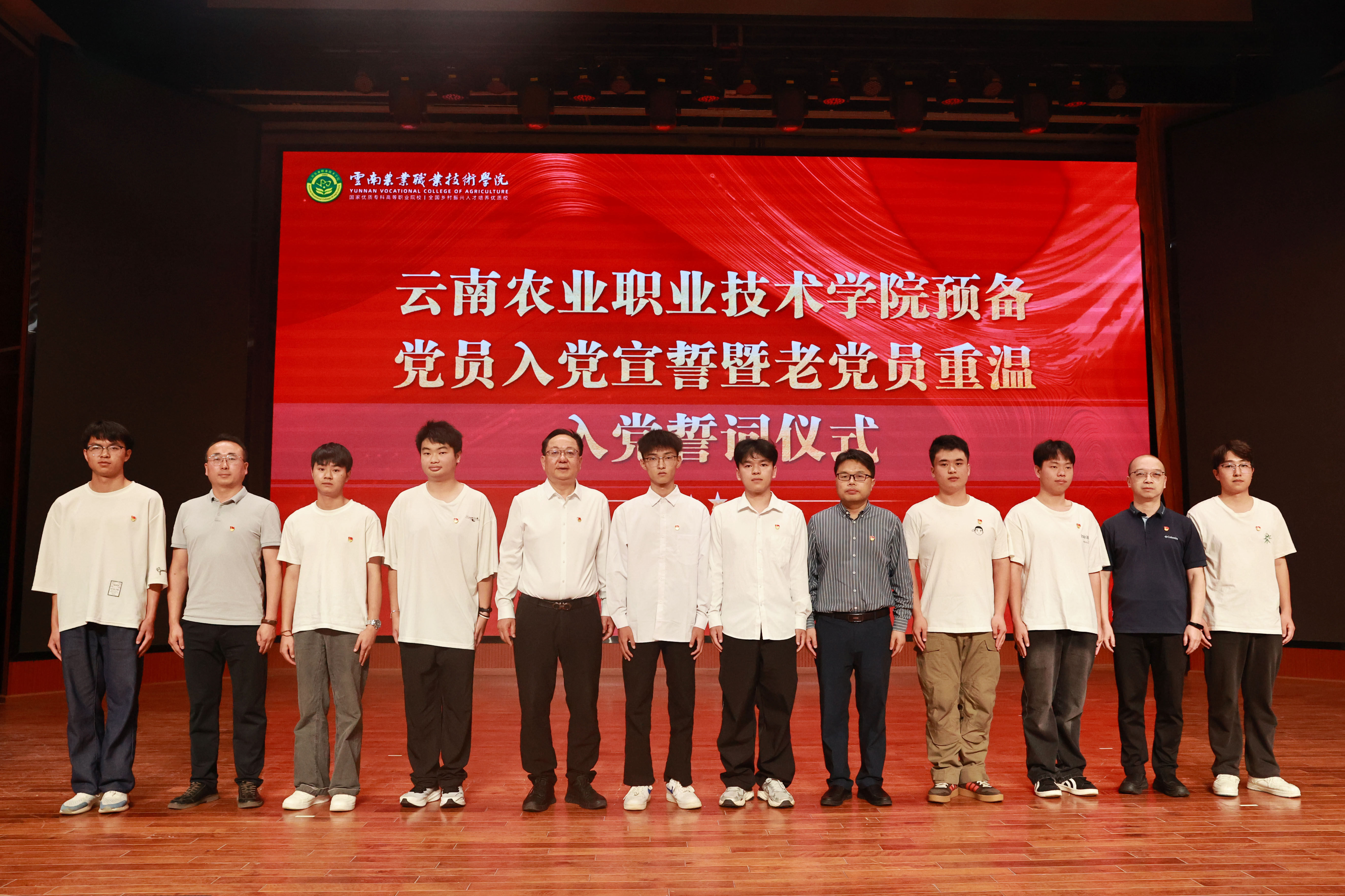 宣誓完毕后,文俊书记、陈太安校长、杨波副书记、组织部部长夏体韬共同为预备党员代表佩戴党徽。一枚枚闪亮的党徽,不仅是身份的象征,更承载着责任与使命。希望新党员们从佩戴党徽的那一刻起,牢记党员身份,践行党员职责,自觉接受监督,充分发挥先锋模范作用。