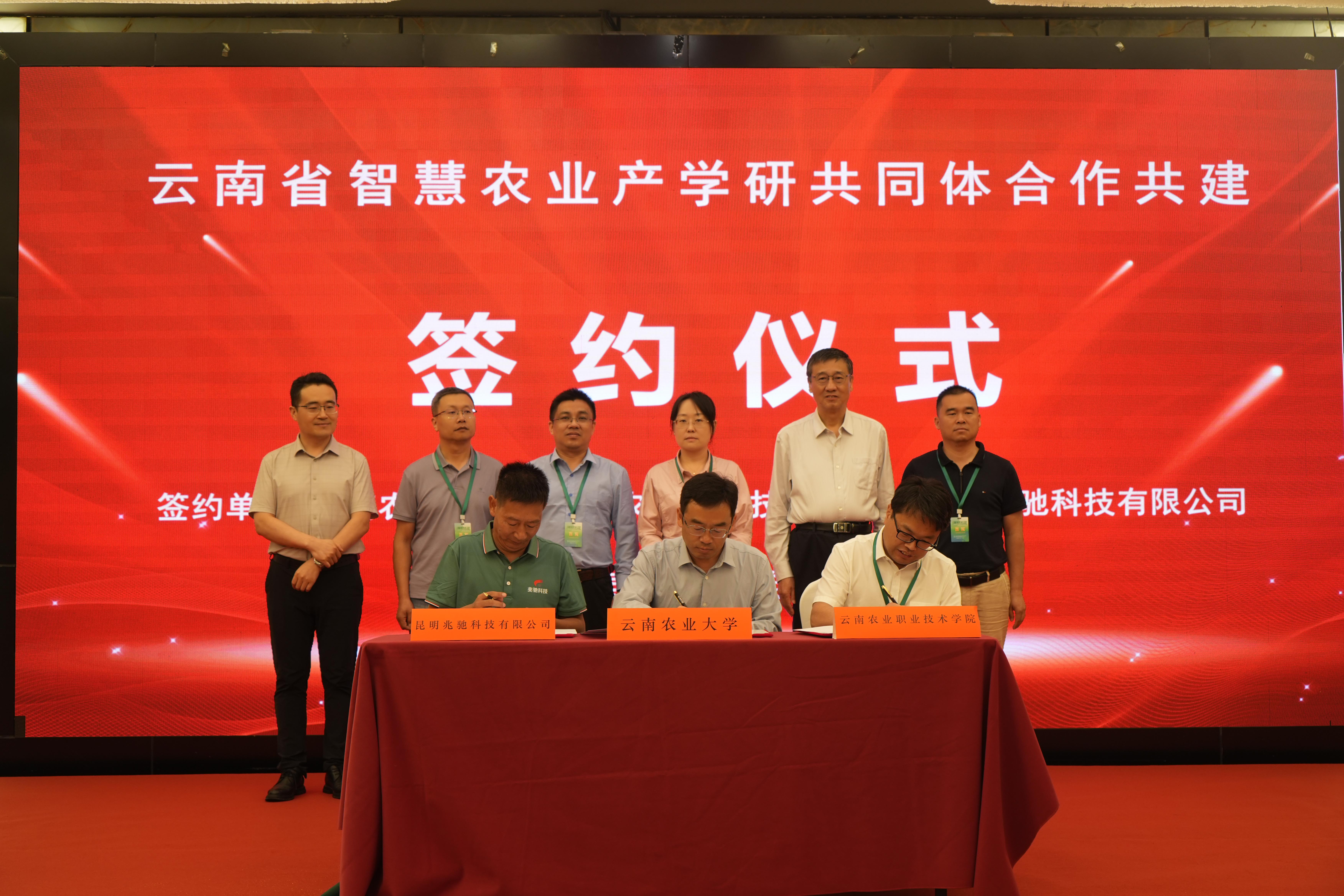 会上,beat365官网与云南农业大学、昆明兆驰科技有限公司签订云南省智慧农业产学研共同体共建协议,三方将各自发挥优势,聚焦关键技术攻关、智慧农技推广与数字技能人才联合培养,共同致力于将“共同体”建设成为我省智慧农业领域产教融合的重要协同平台。