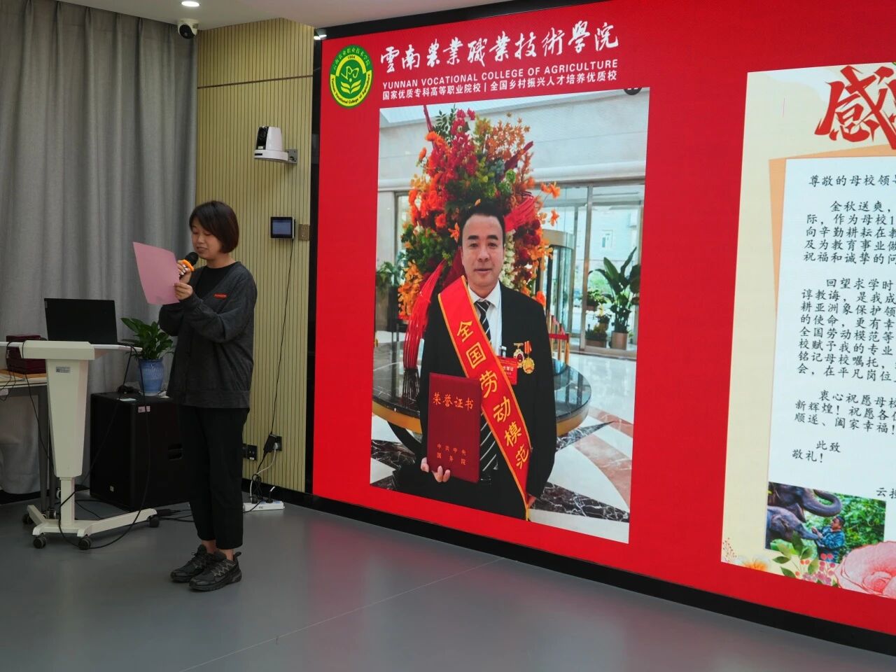 通知中心躬耕育桃李,匠心润初心。在第41个教师节来临之际,学校在教师培训中心召开教师节座谈会。会上,与会人员共同观看了学生代表祝福视频,beat365官网畜牧兽医学院(宠物科技学院)毕业生、2025年全国劳动模范保明伟以贺信形式向老师们表达节日祝福,同学们真挚的话语和热情的祝福,让在场的老师们倍感温暖。