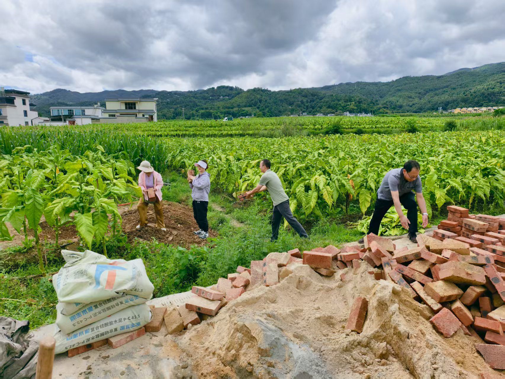 经过三天协同攻坚,团队成功建造火焰幕砖窑2眼。待烤烟采收结束,烟秆经过泡水处理,再行晒干后,即可放入窑内烧制成生物炭并做还田处理,生物炭具有吸附性、不易消解,能够有效改善土壤团粒结构,提升地力,解决土壤长期施用化肥而变得板结的问题。