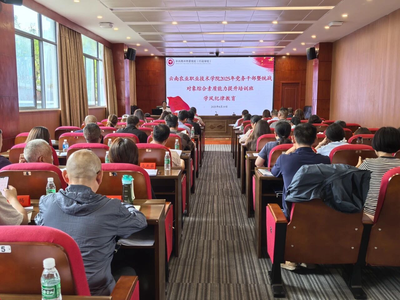 通知中心8月19日至23日,学校组织党务干部、统战对象共计50人到腾冲市委党校开展综合素质能力提升培训。 通过专题教学、现场教学、案例分析、交流研讨等多种方式,学习党的创新理论、追溯腾冲抗战的光荣历史、弘扬伟大抗战精神、体验悠远的和顺文化,实现理论武装、党性修养与业务能力的三重提升。