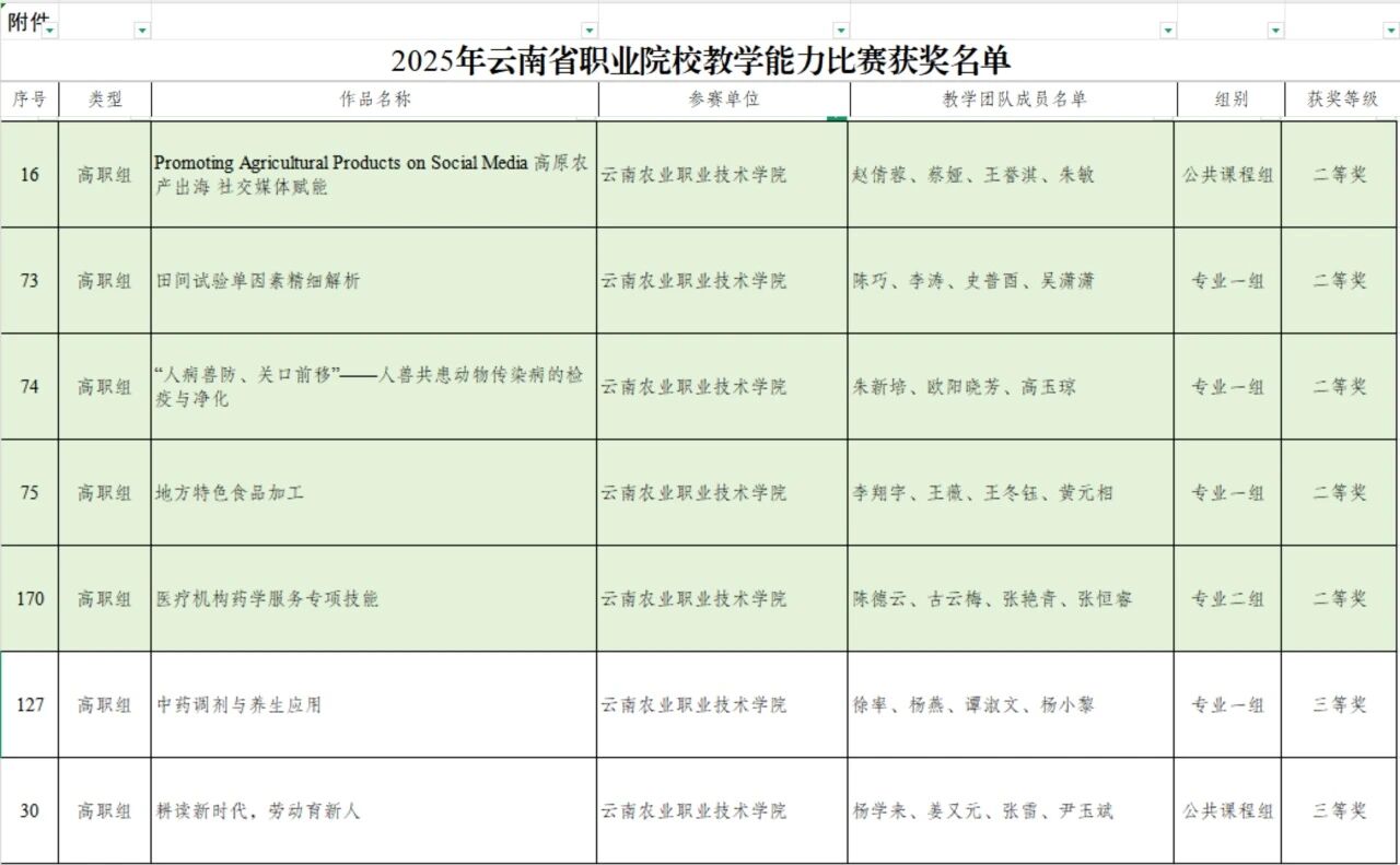 近日,云南省教育厅公布了2025年云南省职业院校教学能力比赛获奖名单,beat365官网7个参赛团队凭借过硬的专业素养与创新的教学设计脱颖而出,斩获二等奖5项、三等奖2项,展现了beat365官网教育教学的深厚功底与鲜明特色。