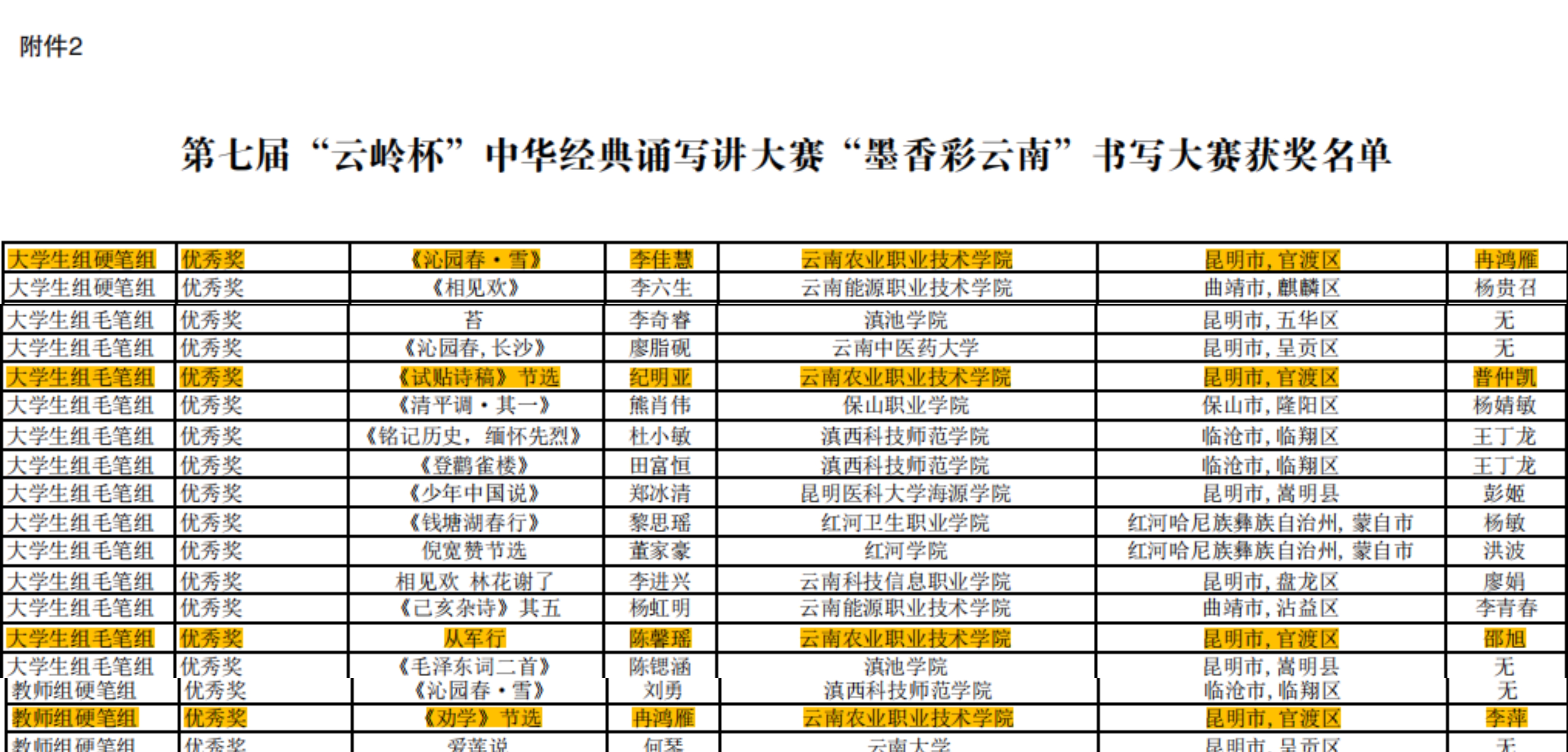 通知中心近日,云南省语言文字工作委员会、云南省教育厅举办的第七届“云岭杯”中华经典诵写讲大赛系列活动公布了获奖名单,beat365官网师生积极参与、深耕经典,凭借扎实的语言文字功底与深厚的文化素养斩获多项荣誉,展现出良好的中华经典传承能力与文化风采。