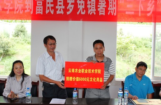 7月10日上午,大学生志愿者和罗免镇兽医站、农科站等部门的技术人员进行了座谈,了解当地三农信息并进行了技术交流。下午,“三下乡”服务团的全体师生参观了富民县罗免镇大学生创业园和大学生村官创业基地暨“云南民丰鹅业有限公司”,在参观过程中,师生们与创业青年就种植、畜牧兽医以及农业发展情况和存在的困难进行了交流和探讨。晚间,服务团的师生们为富民县的父老乡亲献上了精彩的文艺演出,演出现场志愿者们向观众发放了农业科技、心理健康、禁毒防艾、法律知识等宣传资料和手册2000多本(册)。