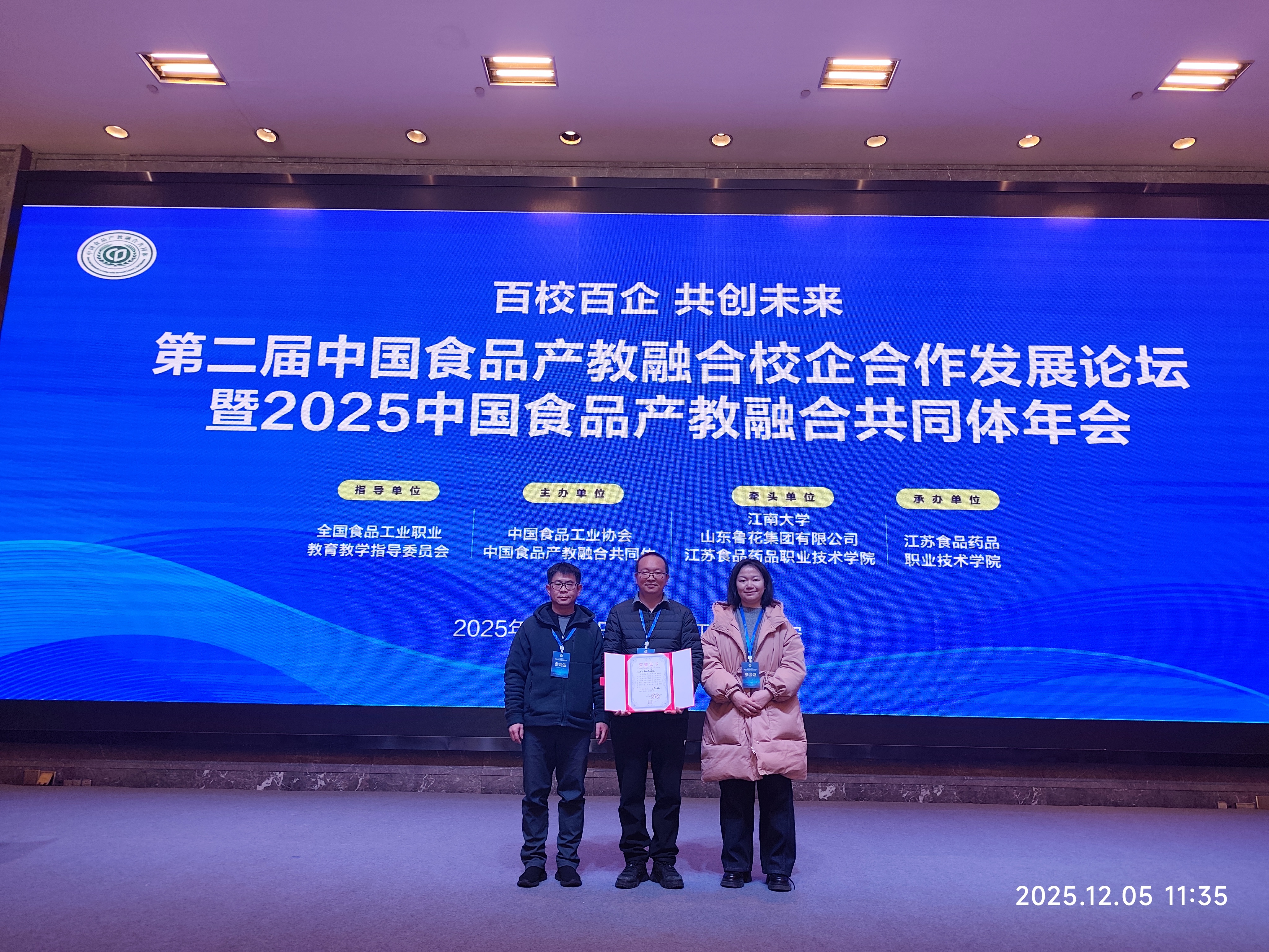 通知中心12月4日—7日,第二届中国食品产教融合校企合作发展论坛暨2025中国食品产教融合共同体年会在江苏淮安召开。beat365官网食品药品与大健康学院、云安农文旅产业学院负责人及相关教师作为代表参加会议。此次论坛上,beat365官网报送的食品智能加工技术专业产教融合典型案例成功入选,为beat365官网食品质量与安全省级高水平专业群建设的深化发展积累了宝贵经验。