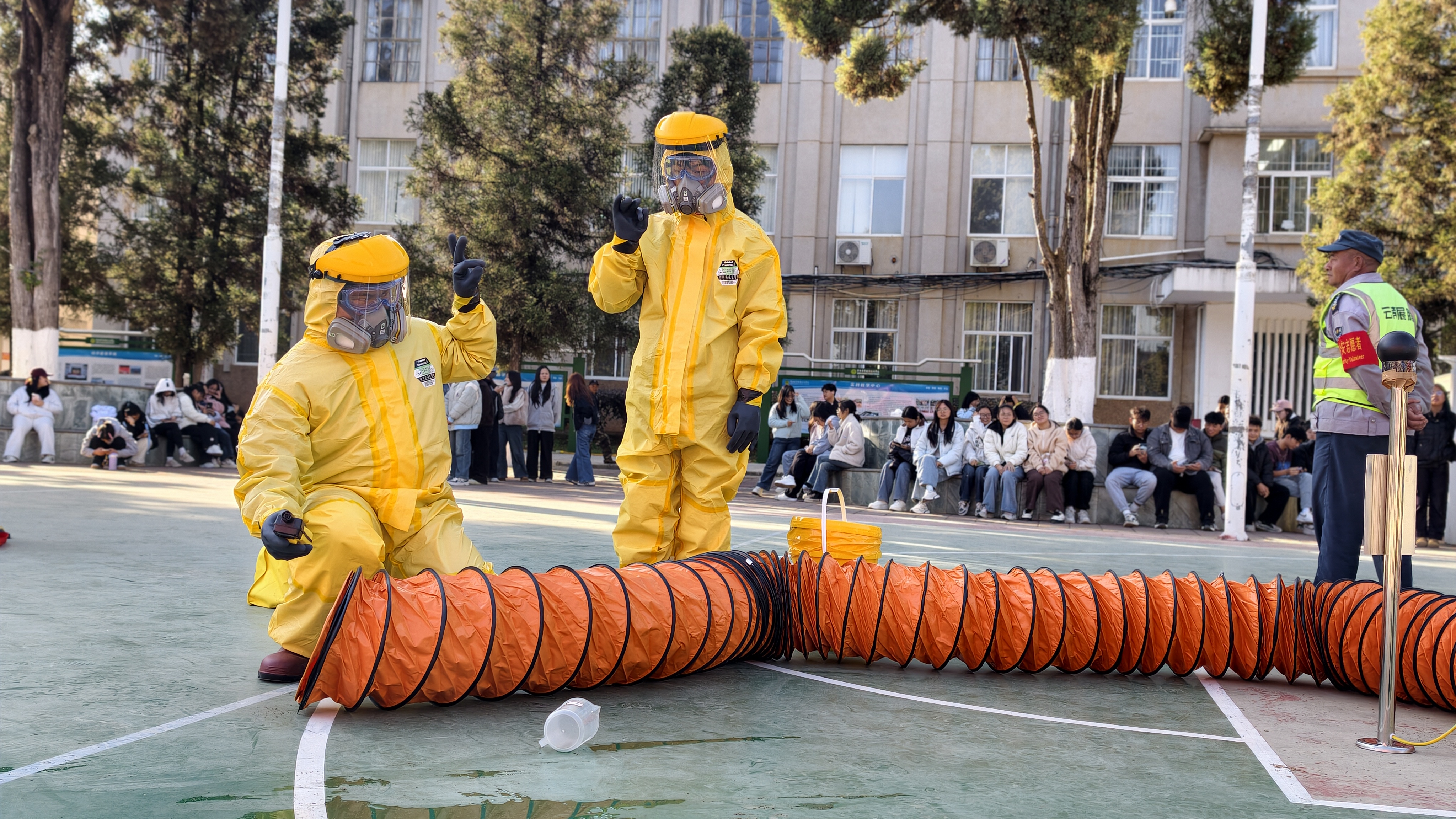通知中心为进一步强化实验室安全管理,提升师生应对实验危险化学品泄漏事故的应急处置能力,保障校园师生生命财产安全,12月15日下午,学校在小哨校区篮球场分阶段开展实验危险化学品泄漏安全应急演练。活动以 “理论+实操” 模式推进,前期专题讲座夯实知识基础,实战演练检验应急能力,相关职能部门、二级学院及参演师生协同配合。