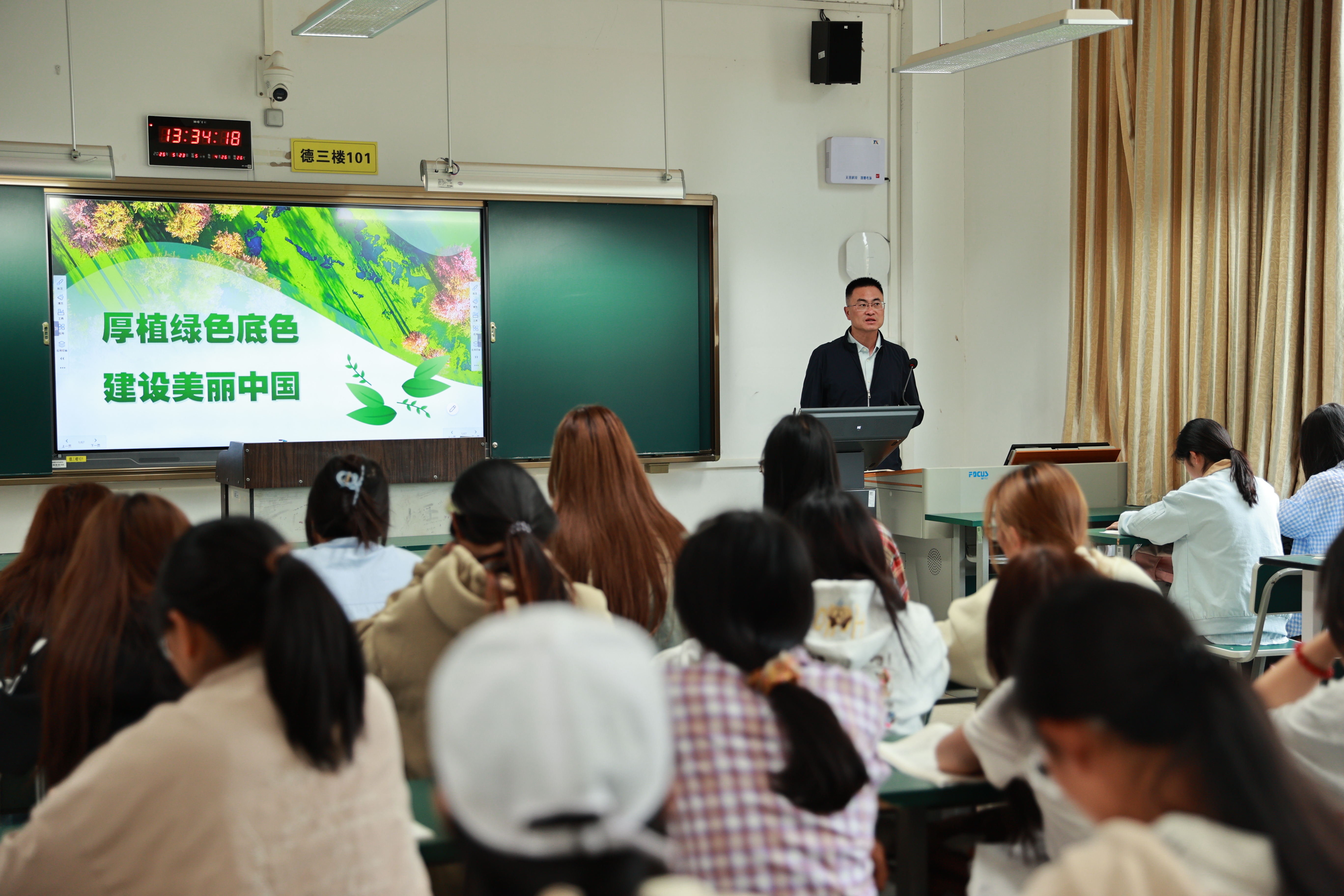 副校长杨涛,纪委书记、监察专员柳勇以《厚植绿色底色 建设美丽中国》为主题,强调了生态文明建设的重要性,呼吁同学们树立绿色发展理念,践行绿色低碳生活方式,成为绿色发展的坚定践行者和推动者,让青春在建设美丽中国的征程中绽放光彩。