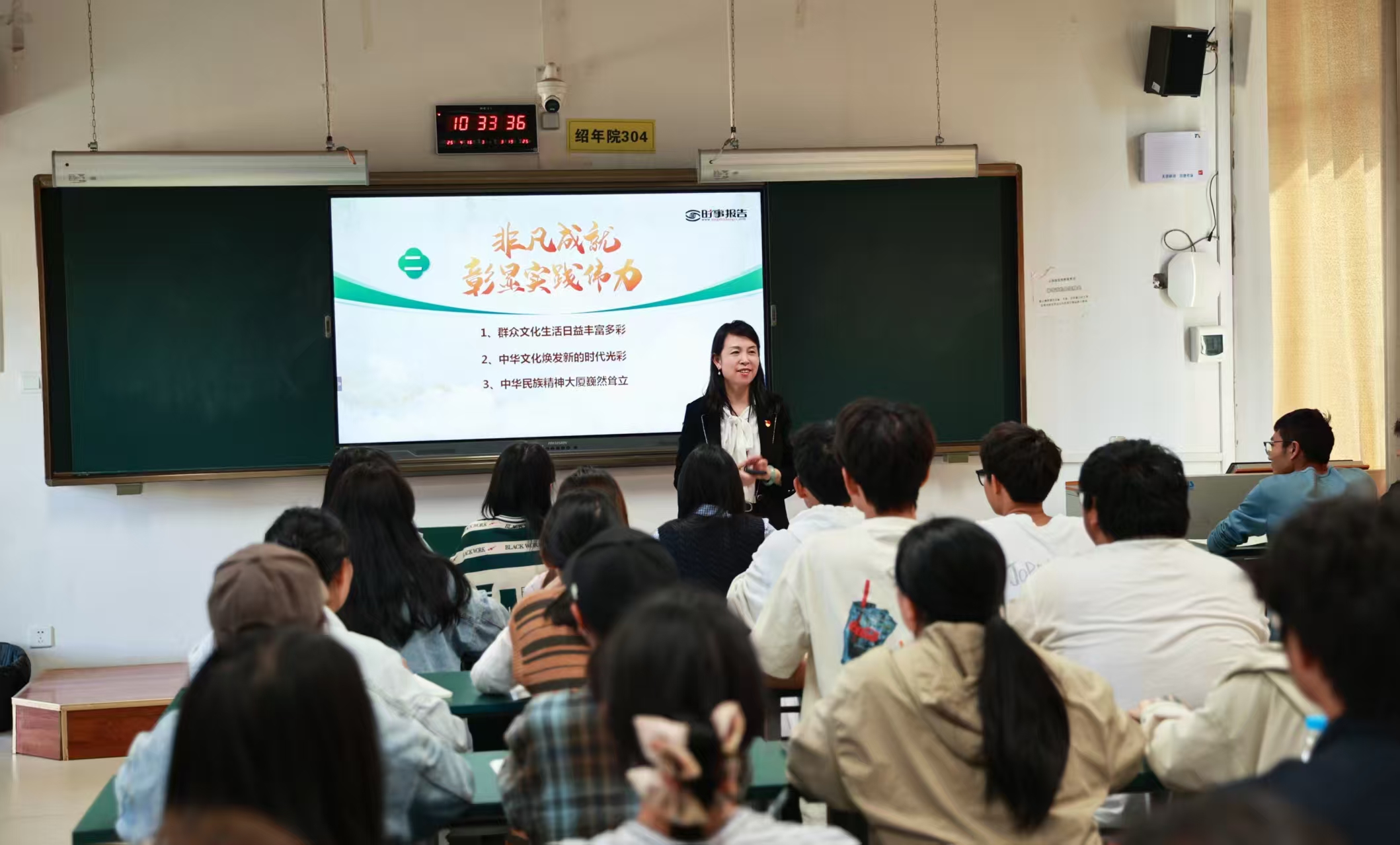副校长盛冀萍以《加快建设社会主义文化强国》为主题,带领同学们领略了中华文化的博大精深,鼓励同学们坚定文化自信,为文化强国建设添砖加瓦,成为中华优秀传统文化的传播者和社会主义文化强国的建设者。