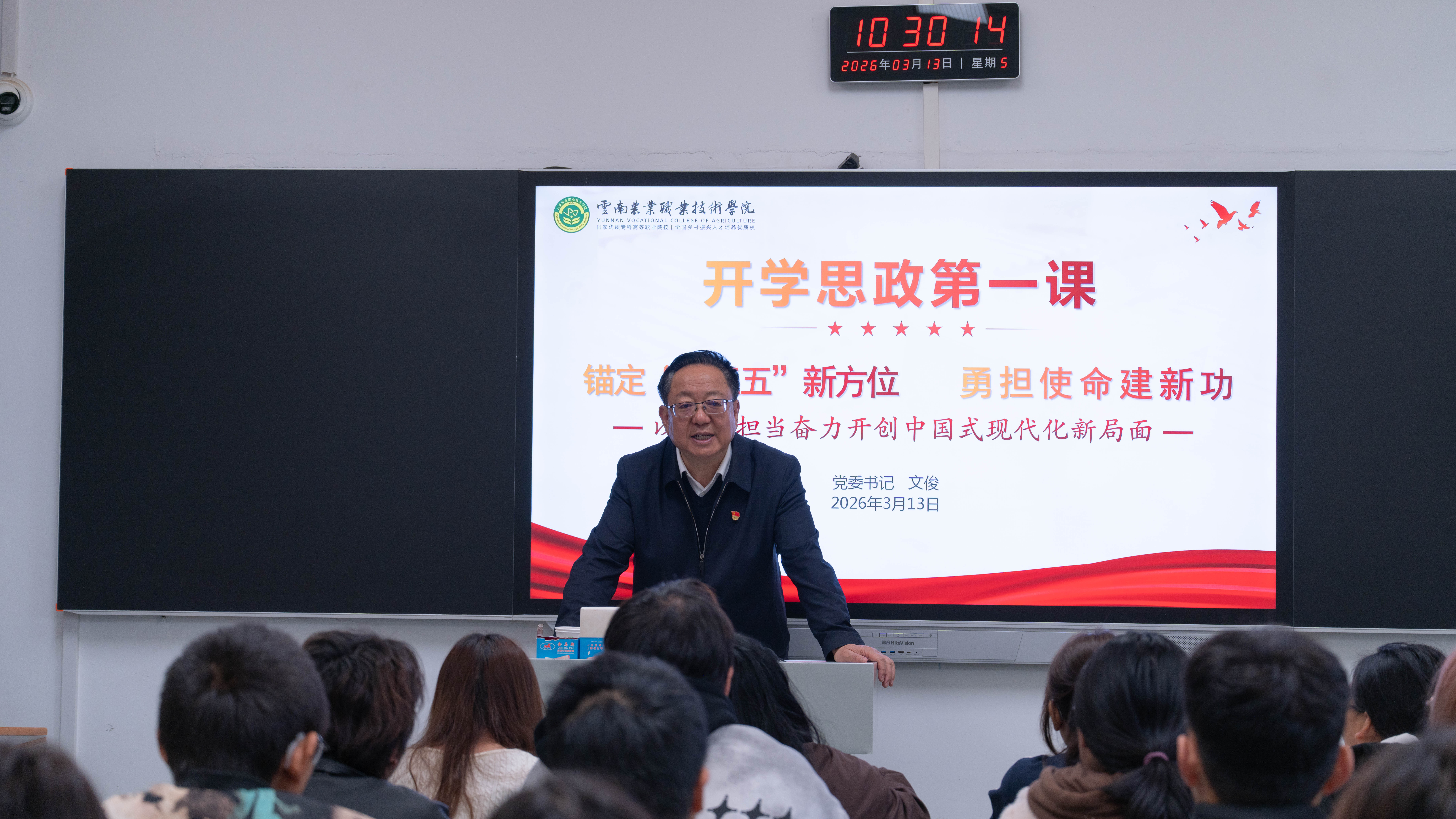 两场开学思政第一课主题鲜明、内容详实且贴合实际,既为同学们清晰勾勒出国家发展的时代方位与战略方向,又紧密结合授课班级专业特色,为青年学子成长成才指明了切实可行的实践路径。同学们纷纷表示,将以青春智慧赋能成长,以实干担当扛起使命,主动投身“十五五”规划实施与中国式现代化建设浪潮,在新时代的广阔天地中,书写农职学子独有的壮丽篇章。(宣传部/图:王安理/文:唐丽群/一审:张敏、二审:普仲凯、三审:杨筱莹/一校:唐丽群、二校:张敏、三校:杨筱莹/责任编辑:唐丽群)