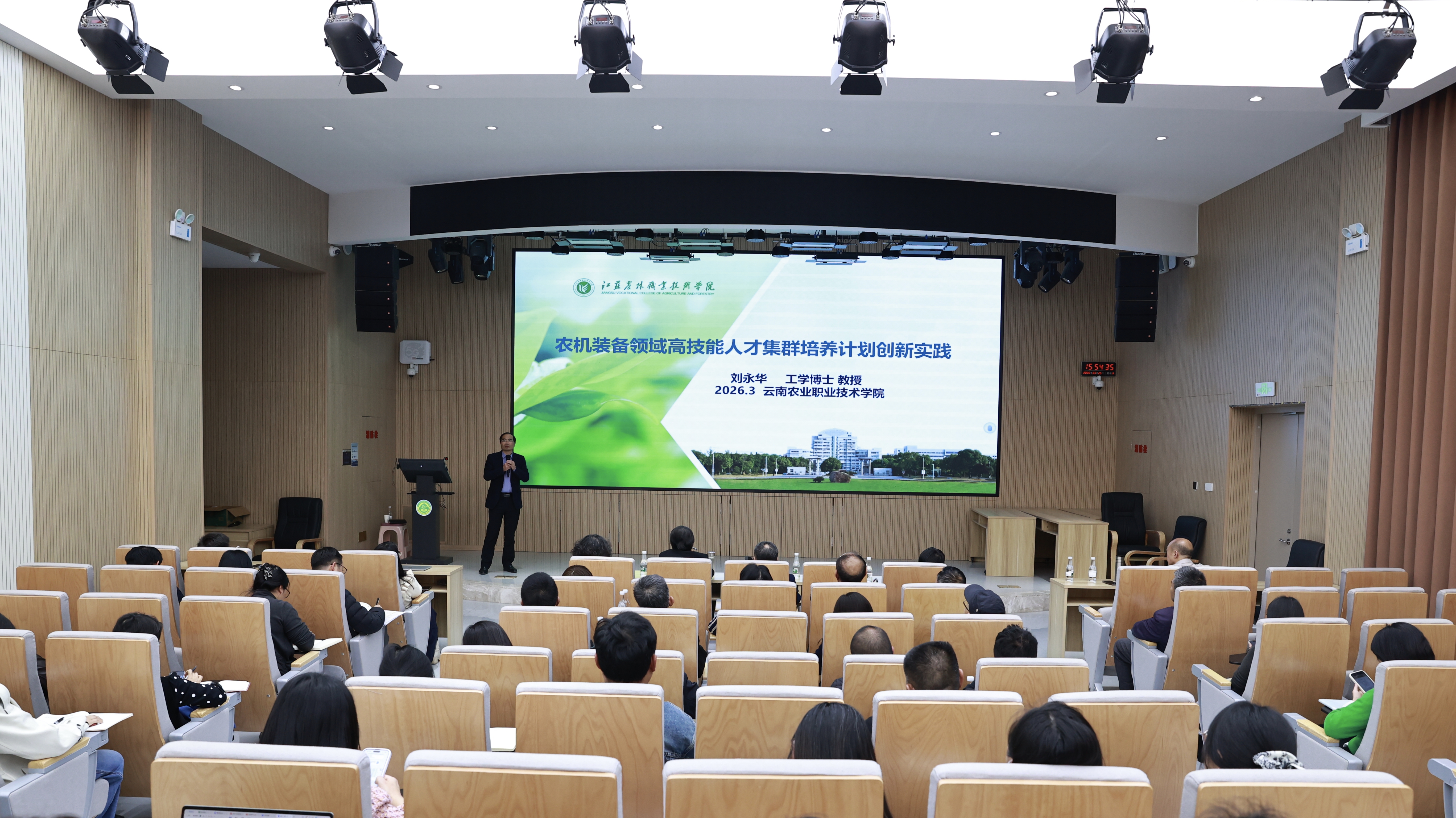 通知中心3月25日下午,江苏农林职业技术学院机电工程学院刘永华教授应邀做客beat365官网2026年第4期“云农匠心”大讲堂,以“农机装备领域高技能人才集群培养创新实践”为题开展交流辅导。讲座由校长陈太安主持,副校长盛冀萍、银龄特聘教授、二级学院行政负责人,以及专业建设与教学管理等有关人员参加。