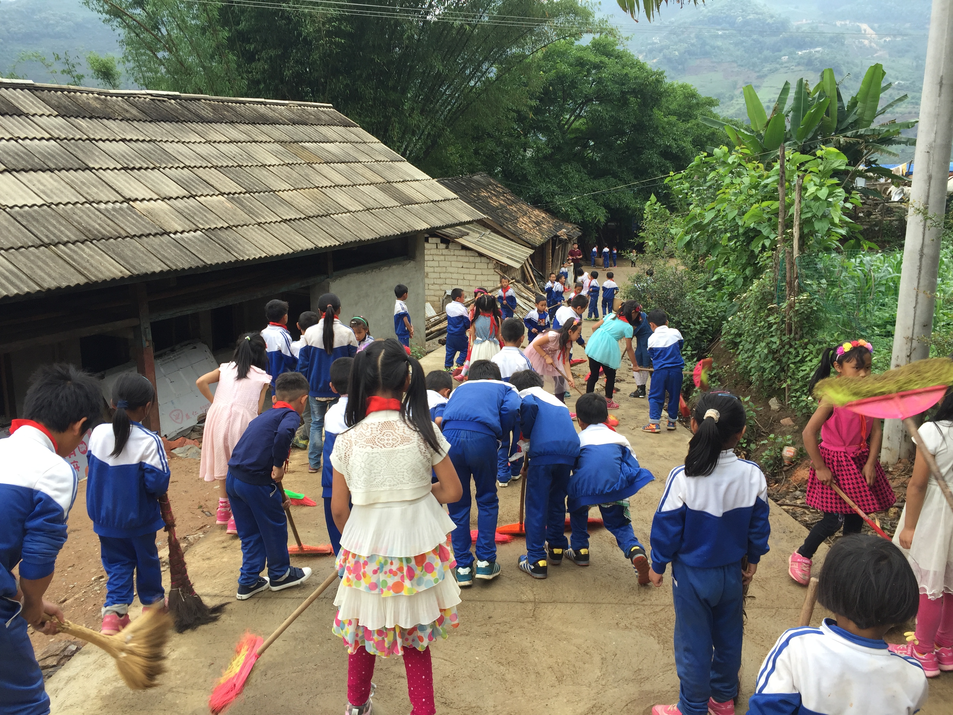 “六一”儿童节当天龚家寨村小学的小朋友们过了一个丰富多彩、富有意义的儿童节。活动开始前,小朋友们统一着装,带上扫把和簸箕来到村里的主要干道上进行了道路卫生清理。