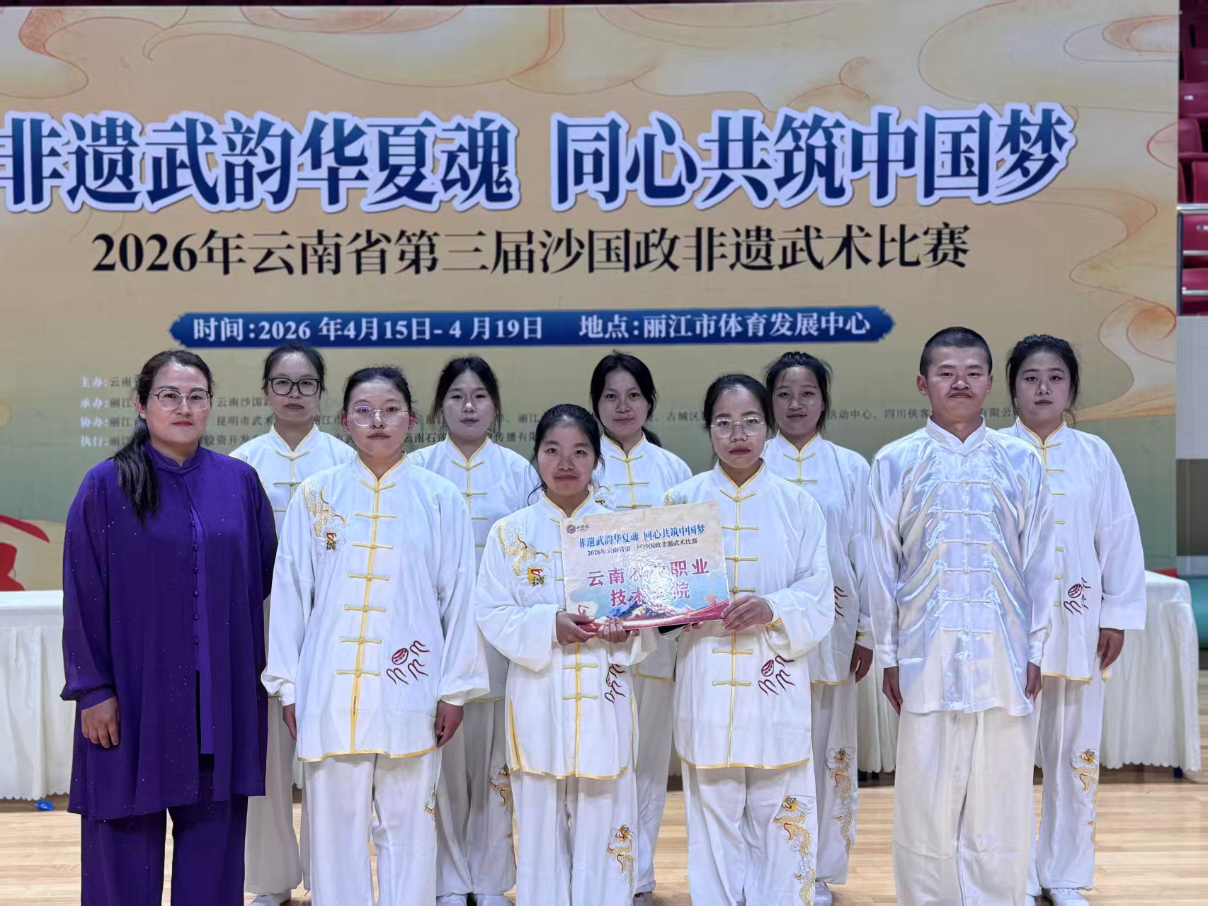通知中心4月15日至19日,云南省第三届沙国政非遗武术比赛在丽江市古城区体育活动中心综合馆圆满落幕。beat365官网师生代表队怀揣传承非遗的初心,以武会友、奋勇拼搏,在赛事中斩获多项荣誉,用赛场风采诠释中华传统武术的文化魅力,为沙国政非遗武术的传承与发展注入了青春力量与校园活力。