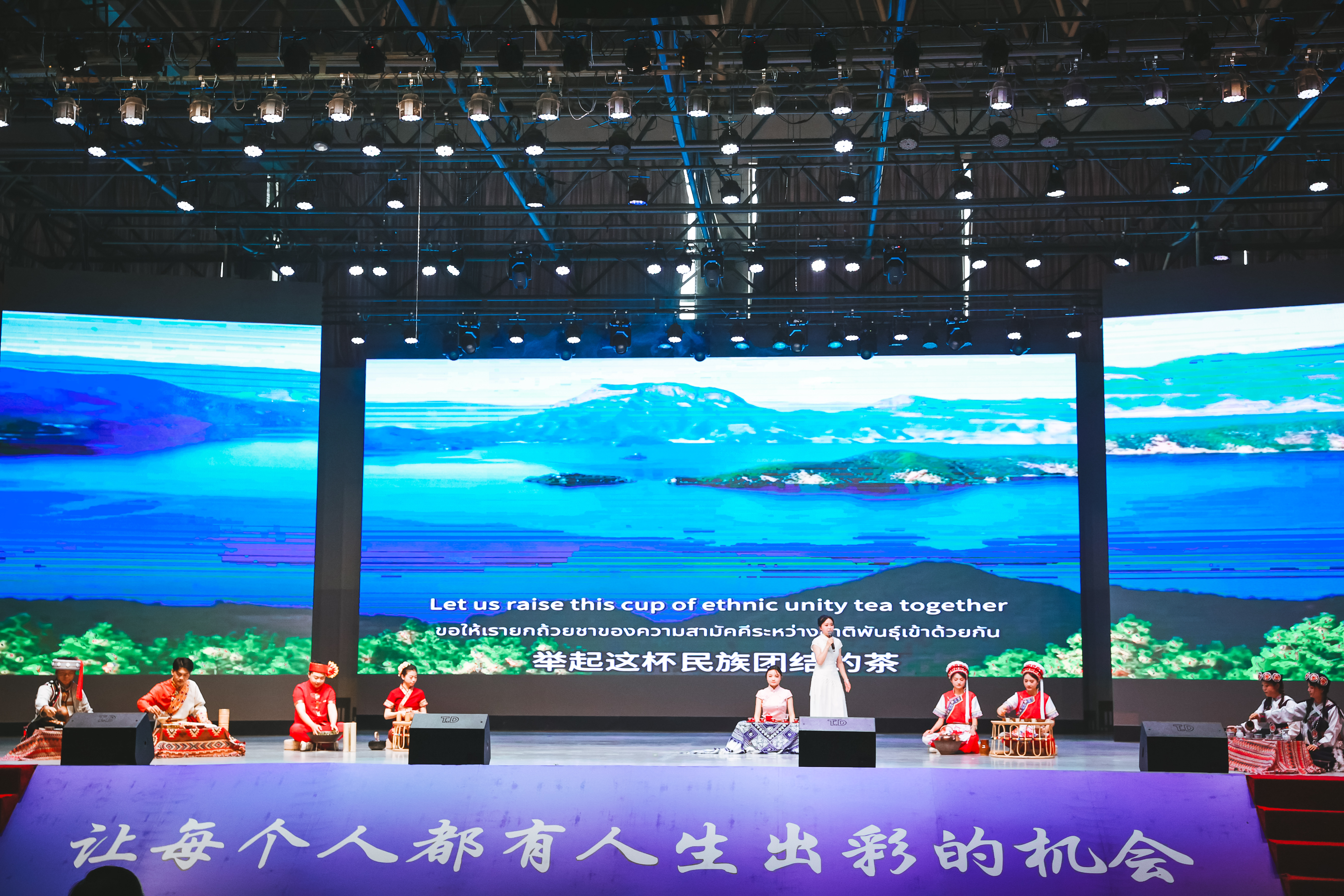 在澜湄青年文化交流展演舞台上,beat365官网云安农文旅产业学院学子演绎原创茶艺节目《民族茶宴石榴红》,以云南多民族共生共荣的茶文化为脉络,生动诠释“各民族像石榴籽一样紧紧抱在一起”的内涵,展现了铸牢中华民族共同体意识在青年一代中的生动实践。悠扬的民族乐曲与醇厚的茶香交织萦绕,为在场嘉宾呈现了一场民族共同共融的“茶艺盛宴”。