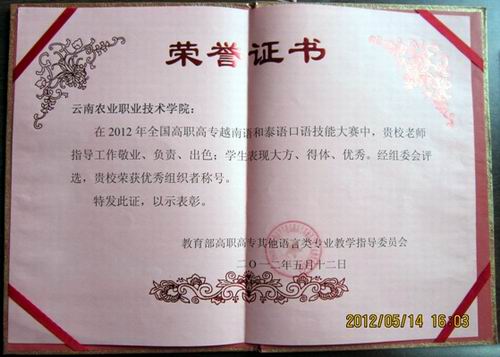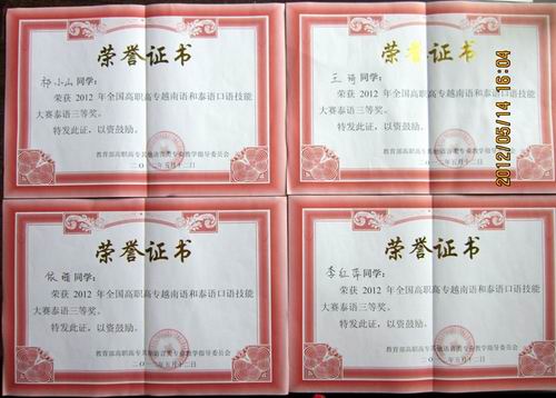 我院基础部在接到本次大赛的通知后,积极组织泰语教研室在全院范围内挑选参赛选手,并对4名备战选手从讲稿撰写、演讲技巧、才艺表演、舞台效果、服装道具等进行了近一个月的精心辅导。经过充分的准备,我院4名选手最终均荣获泰语赛区三等奖的好成绩。这是我院首次参加小语种语言类比赛,通过大赛的历练,进一步增强了学生们学习泰语语言的兴趣和信心,也促进了我院与其它高校之间泰语教学的交流。