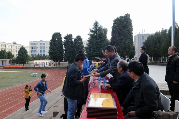 学校领导为获奖团体颁奖