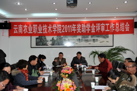 会议首先由计划资产财务处处长杨芳汇报了学院2011年省财政下达的国家助学金和各类奖学金预算情况。然后,管理与信息工程系党总支书记黎红梅,园艺与园林工程系党总支书记唐世凯,畜牧兽医系党总支书记钱林东,生物工程系党总支书记董文红,基础部主任董玉洲等先后汇报了各系部奖助学金的评审发放情况。