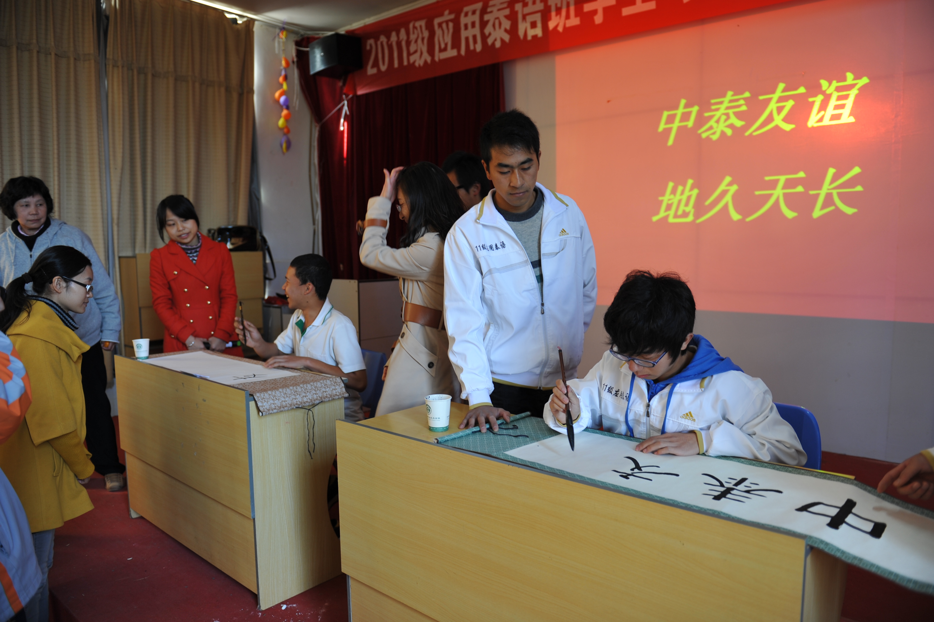 联谊会上,两国学生用歌声、舞蹈、体育、中国书法等形式来表达他们在不同文化背景下的学习成果。激烈的泰拳、动听的泰语歌曲、柔美的泰国东北部舞蹈、凤尾竹下婀娜的傣族姑娘……观众席上不时发出中泰师生们的掌声和笑声,整个联谊会欢乐融融。一曲双方合唱的《月亮代表我的心》充分传达了两国学生在短短两个小时里建立起的深厚感情。最后,联谊会在学生们依依不舍的小组交流中结束。