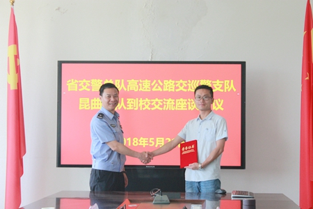 学院领导感谢昆曲大队对学院工作的支持,并向陈跃坤大队长一行介绍了学院的发展历史、目前现状和发展机遇,希望双方在今后进一步加强交流合作。陈跃坤大队长对“全省文明交通单位”及“文明交通先进个人”活动创建情况进行了详细介绍,对学校在创建过程中所做出的努力给予了充分肯定。希望学校积极反馈交通运行中的困难和问题,昆曲大队会尽量协调,共同探讨解决办法。