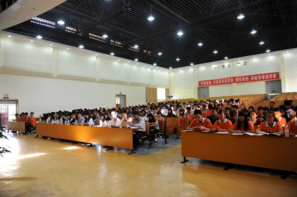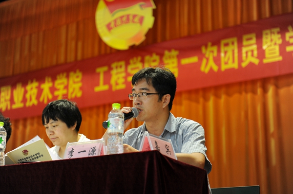 工程学院团总支书记蔡东在会上做工作报告,他对工程学院团总支自成立来的工作进行了回顾与总结,并指出今后工作的思路和展望。
