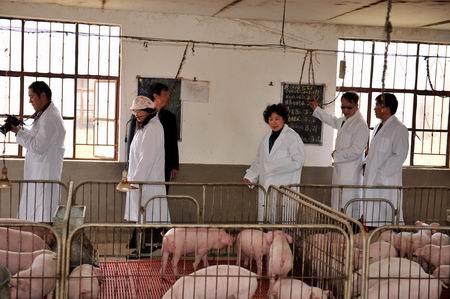 座谈会之前的中午1:00 ,学院党委书记崔金赋、院长彭志远、副院长俞浩亲自陪同省委第六巡视组领导参观我院校内养殖、种植实训基地,第六巡视组领导对我院高规格建设的实训基地予以高度赞扬。