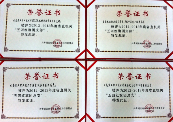 据共青团云南省直属机关工作委员会 “云直团工发〔2014〕4号” 《关于评选2012—2013年度省直机关 “五四红旗团委”、“五四红旗团支部”、“优秀共青团员”、“优秀共青团干部”的通知》文件获悉,为表彰先进,树立典型,激励广大团员青年、团干部和基层团组织更加奋发进取,推动省直机关共青团工作更好发展,经省直机关各级团组织认真推荐,省直机关工委审核后决定,对24个“省直机关五四红旗团委”、38个“省直机关五四红旗手团总支”、69名“省直机关优秀共青团员”、76名“省直机关优秀共青团干部”予以表彰。