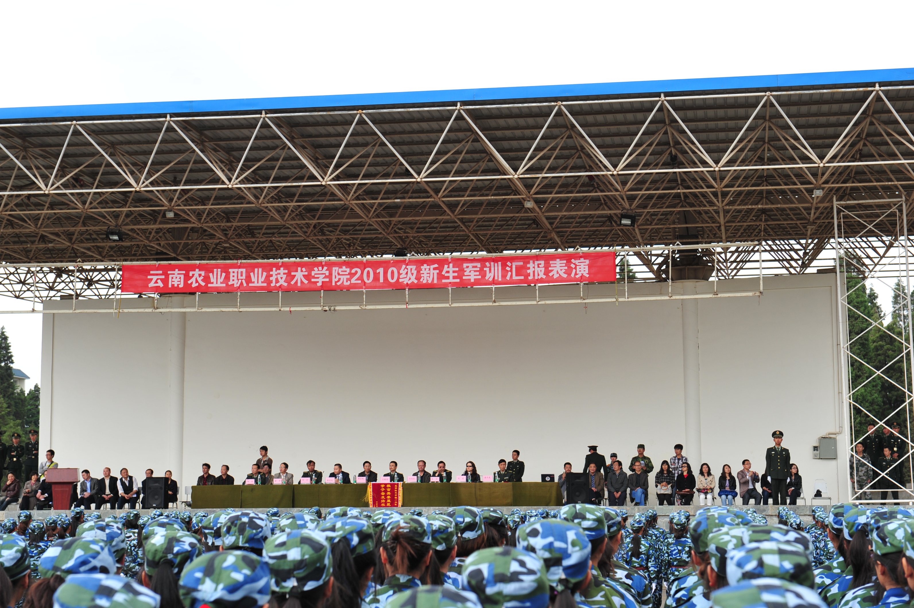 2010年4月29日,彩旗飘飘,鲜花锦簇的昆明陆军学院阅兵台迎来了beat365在线唯一官网2010级新生军训汇报表演。出席此次汇报表演的有beat365在线唯一官网党委书记崔金赋同志、院长彭志远教授、何明东副院长、俞浩副院长、赵莉副院长、党(院)办凌军主任、宣传部冯志宏部长以及学院中层以上领导干部、昆明陆军学院副政委王晓军、昆明陆军学院军训办主任田景大校、昆明陆军学院一大队晏吉虎政委、杨冰大队长等领导。汇报表演由昆明陆军学院一大队晏吉虎政委主持。