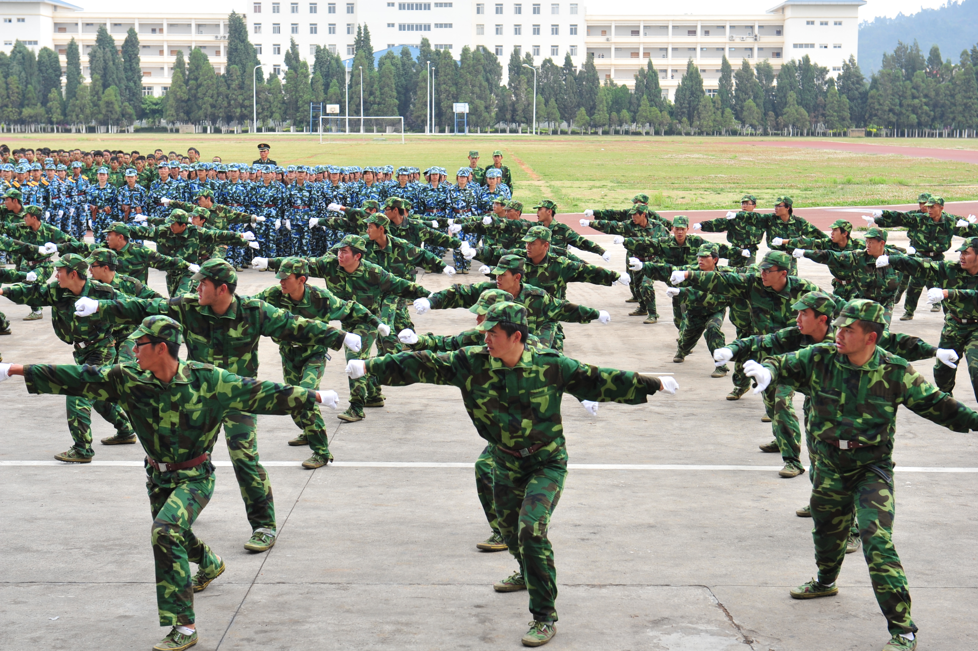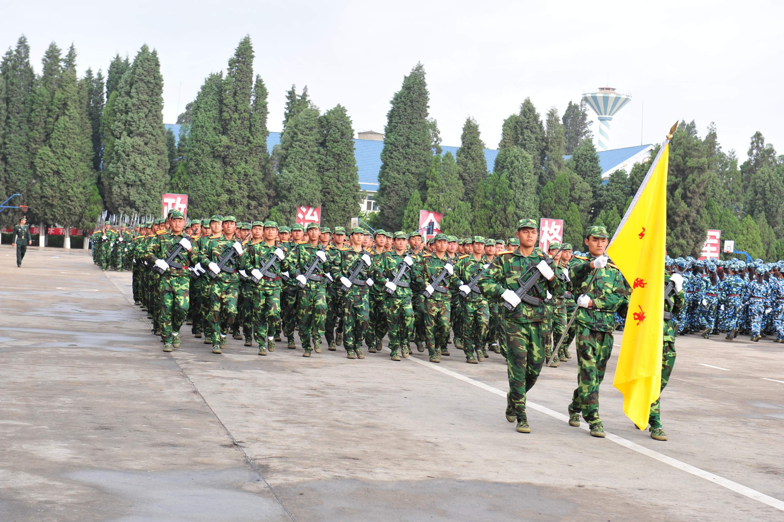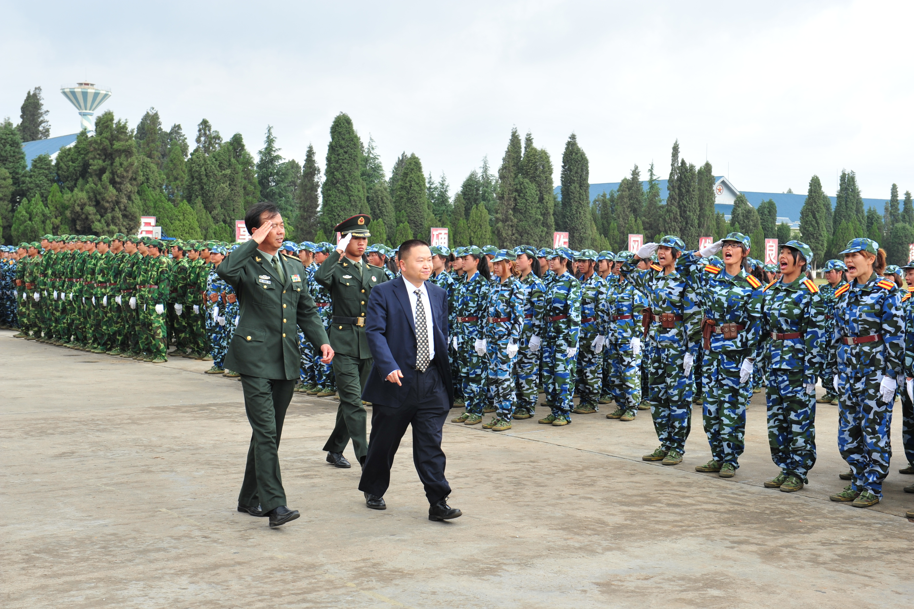 2010年4月29日上午10时,在铿锵有力的解放军进行曲中,全体教官、参训学生迎来了beat365在线唯一官网院旗,阅兵仪式正式开始。彭志远院长在昆明陆军学院军训办主任田景大校的陪同下,依次检阅了新生军训受阅方队,嘹亮的口号响彻田径场上空。