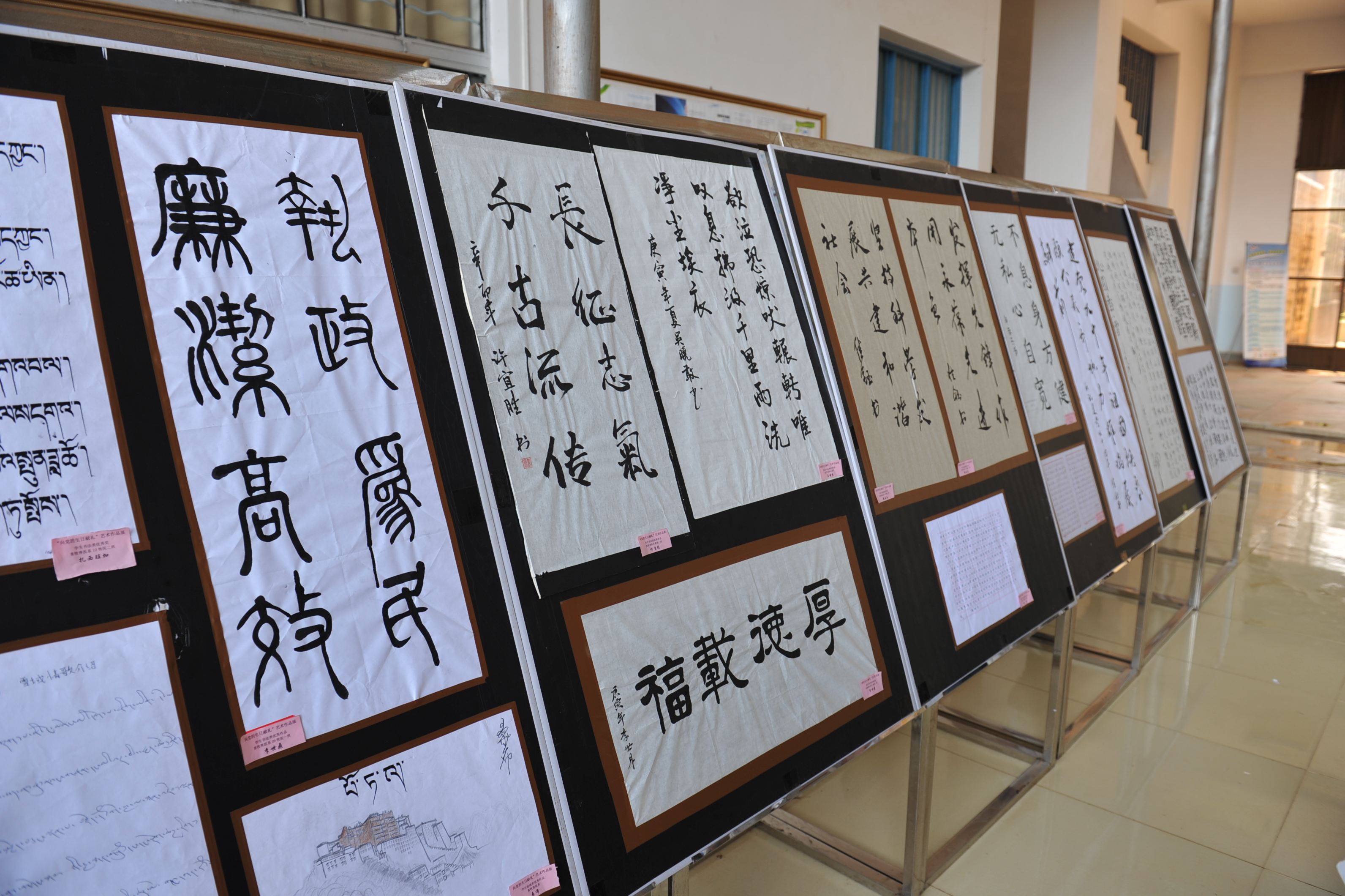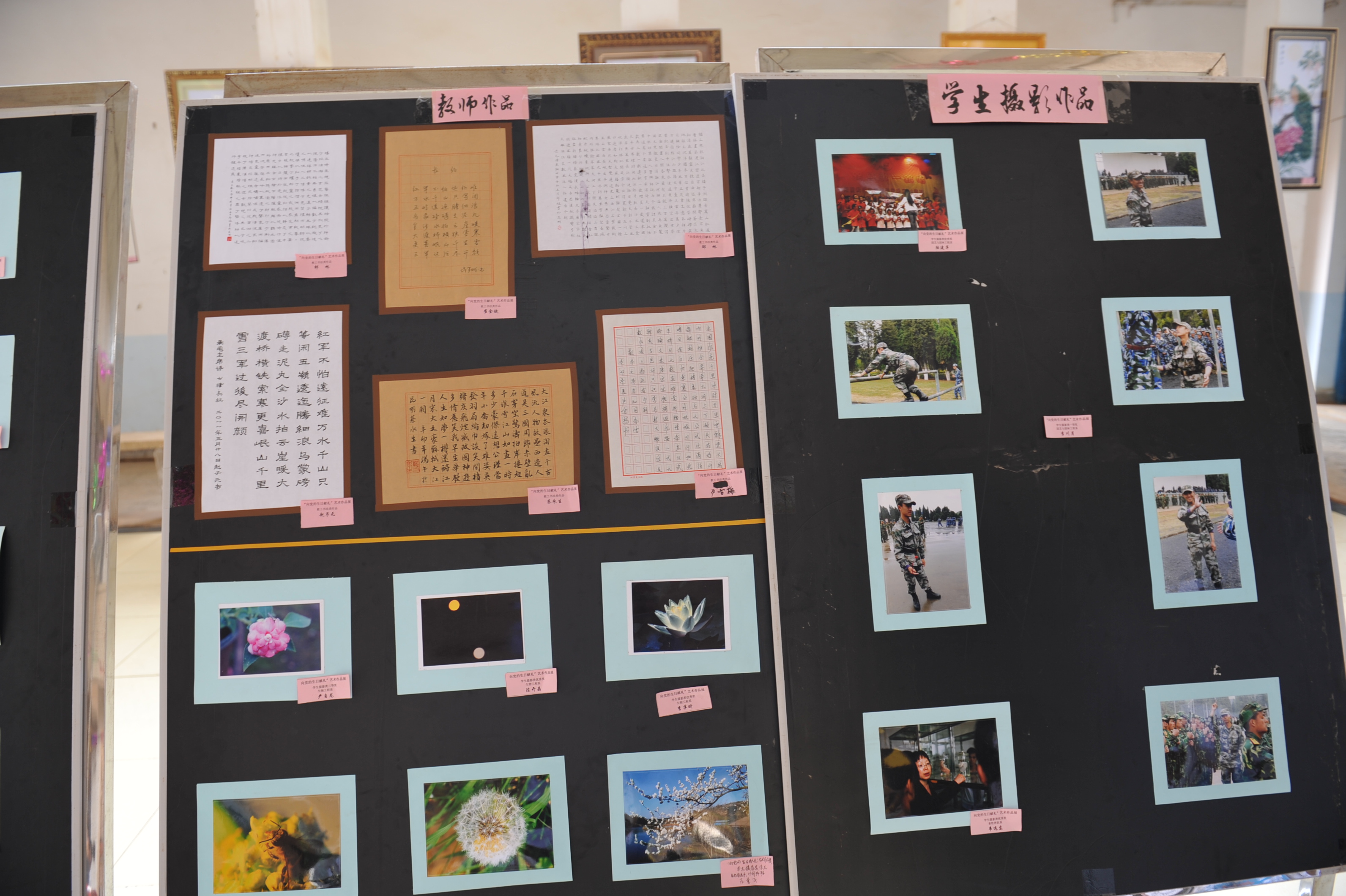 师生艺术作品展活动由学院党委主办,党委办公室、组织部、宣传部承办,展出时间为6月10日-13日。此次活动得到各系党总支和各直属支部的大力支持,积极组织师生参加活动,共展出教职工书法、手工、绘画作品20余件,收到学生书法、绘画、摄影、手工作品80余件,经评审共评出获奖作品50余件,其中一等奖5件,二等奖11件,三等奖14件,优秀奖25件。