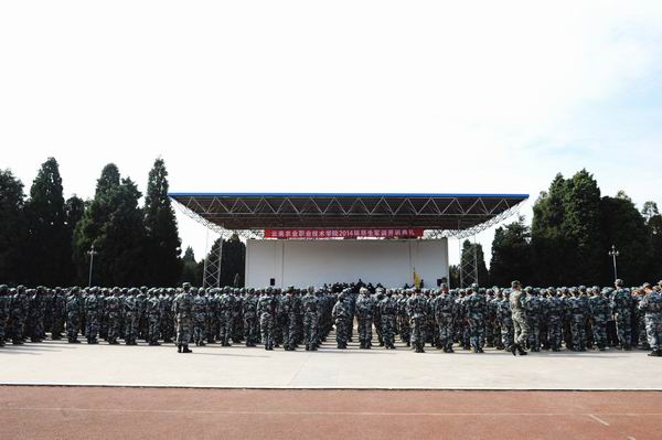 昆明民族干部学院的教官代表在讲话中表示,为了圆满完成本次军训任务,全体教官决心做到:按计划严格施训,做到科学管理、科学训练;不打骂、不体罚学生,做到以情带兵,以理服兵;在生活中,力尽所能关心、帮助每一位同学,与老师一道将各项工作做好;培养同学们吃苦耐劳、团结协作、爱国奉献、顽强拼搏的作风,力争让每一位同学有所获、有所得;保质按量地完成各项任务,以优异的成绩向领导和老师汇报。