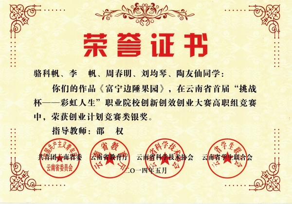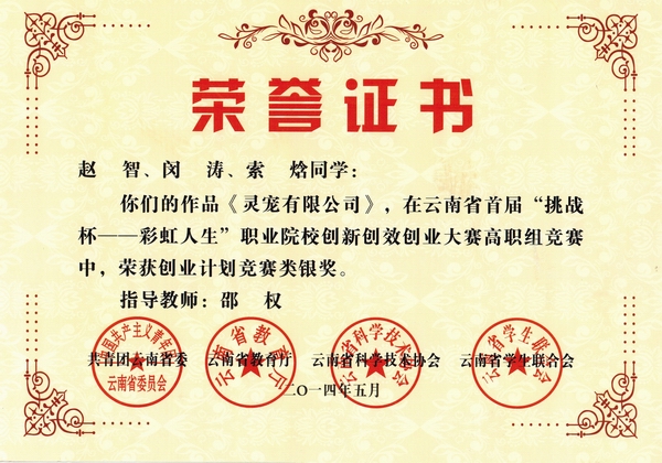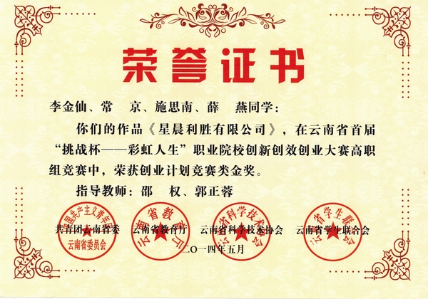 经济管理学院按照学校要求,参加了由团省委、教育厅、省科协、省学联共同主办,昆明冶金高等专科学校承办的首届云南省“挑战杯——彩虹人生”职业院校创新创效创业大赛,所报的3件作品,喜获创业计划竞赛类一金两银的佳绩。