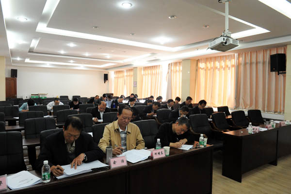 上午9:00--11:30,惩防体系建设暨党风廉政建设汇报会在茭菱校区行政楼三楼报告厅召开。普洱学院党委副书记兼纪委书记魏宏为带队领导,考核组成员有省教育厅监察室主任陈文、普洱学院纪检监察审计处副处长李耀萍、昭通学院纪检监察审计处副处长张肇武、昆明工业职业技术学院机械学院党总支书记何爱武、云南中医学院纪检监察室审计科科长马芬等。学校党委书记崔金赋、院长李永忠、党委副书记纪委书记赵刚、副院长何明东、副院长俞浩,学院中层领导干部,教职工代表,离退休代表,民主党派代表,“两代表一委员”等共计60余人出席了考核会。考核会由李永忠院长主持。