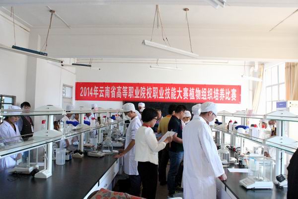 我院承办的2014年云南省高等职业院校学生技能大赛,包括了植物组织培养、中药传统技能和新城疫抗体测定三个赛项。