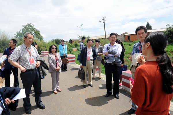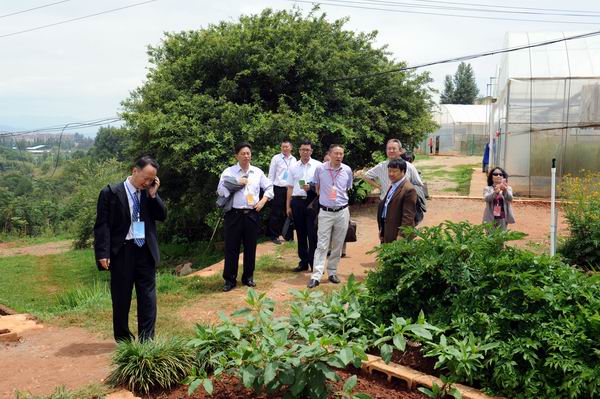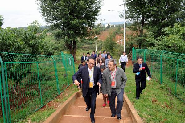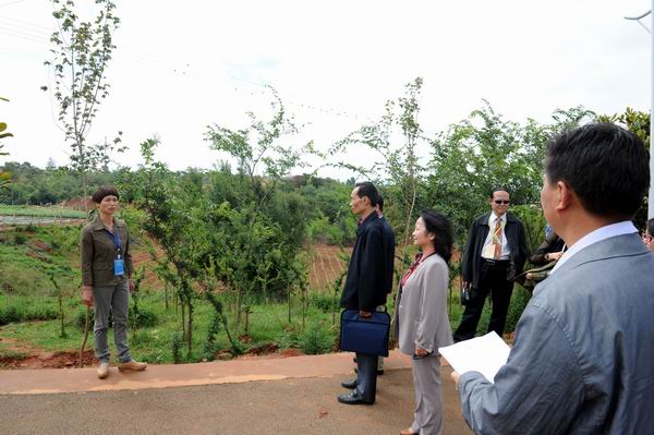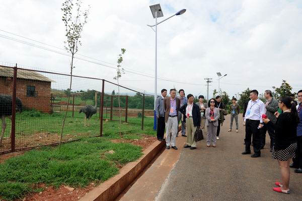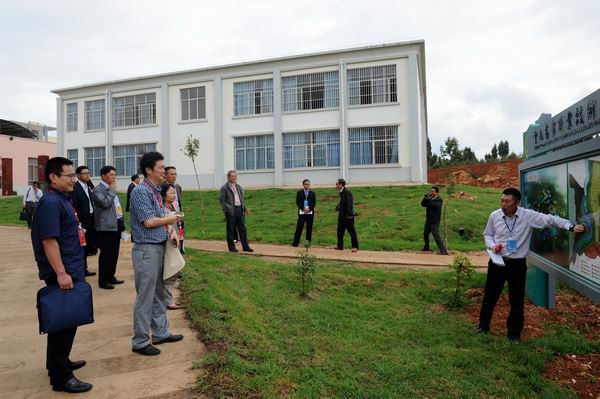 专家组一行沿花庄河上农牧场实训基地,先后察看了园林园艺学院的园林实训基地育苗场、果树实训基地、蔬菜实训基地、园艺花卉实训基地;察看了畜牧兽医学院的草地牲畜养殖基地、兔、鸡实训基地、水禽实训基地、兽医疾病检测防疫中心、生猪宰杀点、滇陆猪扩繁场;考察了农学院的中草药实训基地、油菜育种基地、玉米育种基地、水产养殖基地等。
