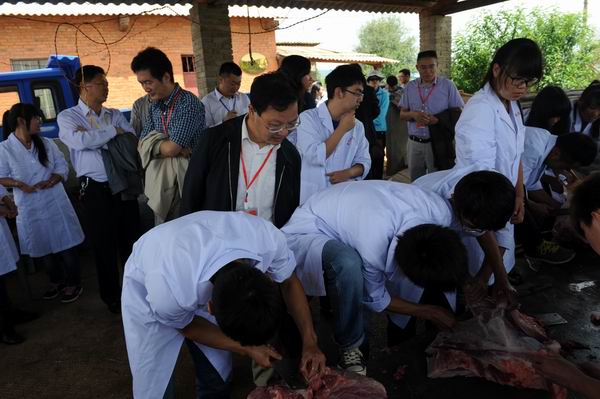 考察畜牧兽医学院生猪宰杀点