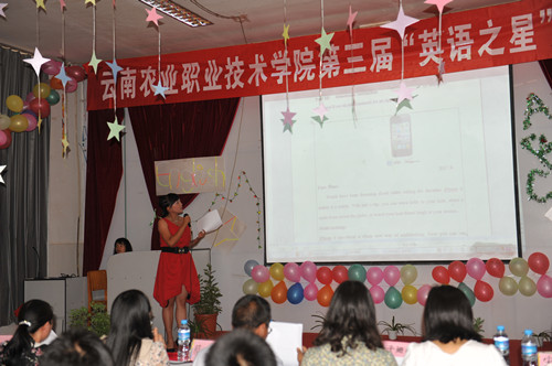 经过三个环节的激烈角逐,11级应用泰语班李锴林同学获得大赛一等奖,并将代表学院参加十月份举行的第九届全国高职高专实用英语口语大赛云南赛区复赛。