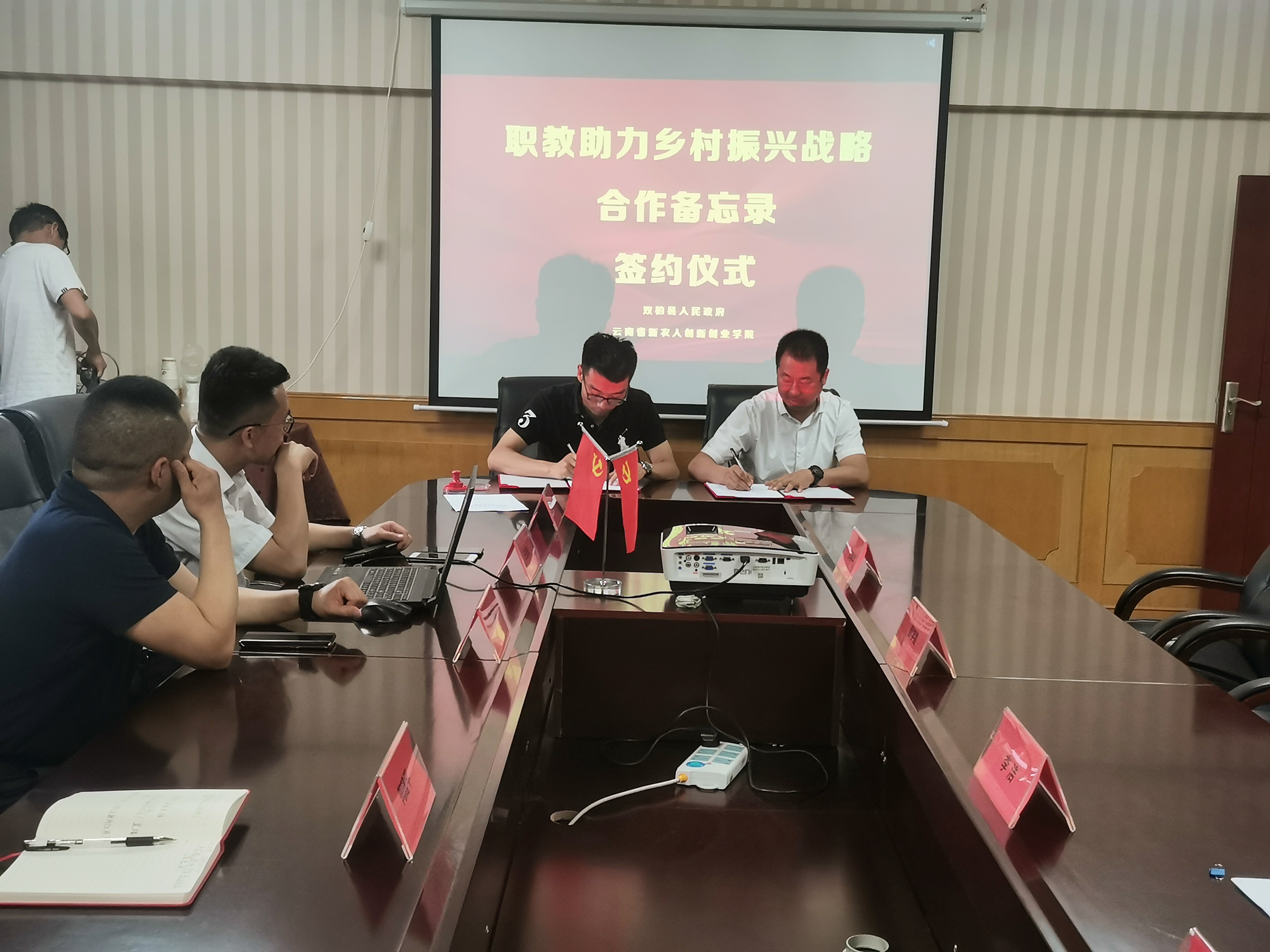 通知中心为认真学习贯彻习近平总书记考察云南重要讲话精神,贯彻落实全国职业教育大会精神,落实职业教育改革推进乡村振兴的各项部署,5月19日下午,双柏县人民政府与我院筹建的云南省新农人创新创业学院签署“职教助力乡村振兴战略”合作备忘录在我院农培中心四楼401会议室举行,双柏县人民政府副县长普学昌代表双柏县人民政府和云南省新农人创新创业学院执行院长王亚楠现场签约。