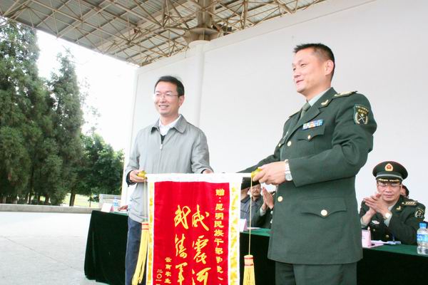 李永忠院长向民族干部学院一大队授锦旗
