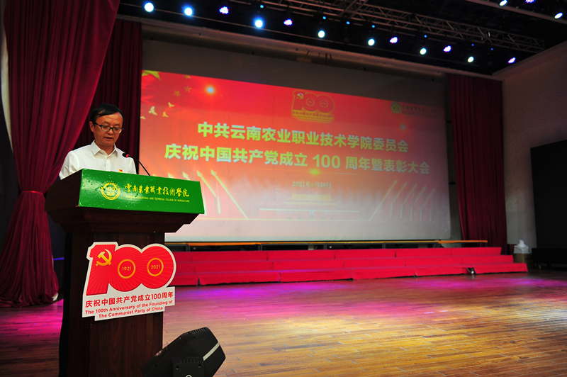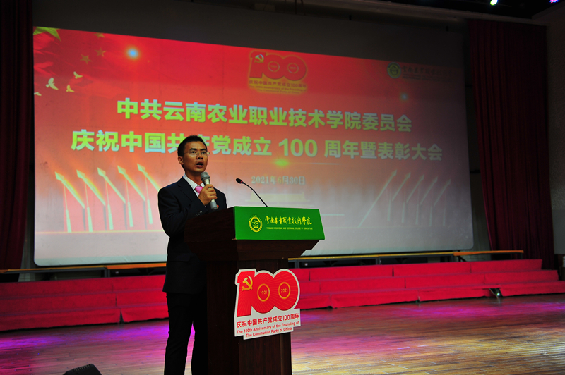 会上,党委书记崔金赋同志代表学院党委向获 “光荣在党50年”纪念章的老党员、受到表彰和获奖者的师生们表示热烈祝贺。并带领师生共同回顾党的百年奋斗历程,回顾beat365在线唯一官网在党的领导下不断发展进步的办学历程。他指出,本次会议既是一次表彰先进、鼓舞斗志的动员会,也是一次明确方向、再创佳绩的誓师会。学院今天所取得的办学成就,离不开中国共产党的正确领导,此次受到表彰的优秀个人和先进基层党组织,是我院师生践行不忘初心、牢记使命要求,充分发挥发挥先锋模范作用的优秀代表,全院党员干部和广大师生要牢记习近平总书记“以立德树人为根本,以强农兴农为己任”的殷殷嘱托,深入学习老党员们和本次受到表彰的优秀个人和基层党组织的宝贵精神,不断从百年党史中汲取奋进智慧、从榜样身上汲取党性力量,不忘初心、牢记使命,团结拼搏、接续奋斗,勇挑重担,再立新功,共同谱写学校“十四五”发展新篇章。一要学先进、争先进,大力弘扬先进人物精神。学院各部门和广大党员干部要以此次表彰为契机,扎实推进党史学习教育效果,汲取干事创业的强大精神动力,努力打造“有爱心、有灵魂、有血性、有本领”的四有团队。二要抓基层、强基础,切实打造一流党支部。各基层党支部进一步强化责任担当,按照“能力过硬、发展过硬、服务过硬、作风过硬”的要求,把支部建设好,把作用发挥好,持续增强基层党支部的战斗堡垒作用;要教育引导党员干部时刻牢记自己的第一身份共产党员,第一职责是为党工作,切实发挥党员先锋模范作用。三要抓团结、强效果,最大限度凝聚发展合力。学院各项工作都到了攻坚克难的关键时期,各部门要进一步强化团结协作,勇于克服困难,勇于解决问题,真抓实干,最大限度凝聚科学发展,加快发展的强大合力。