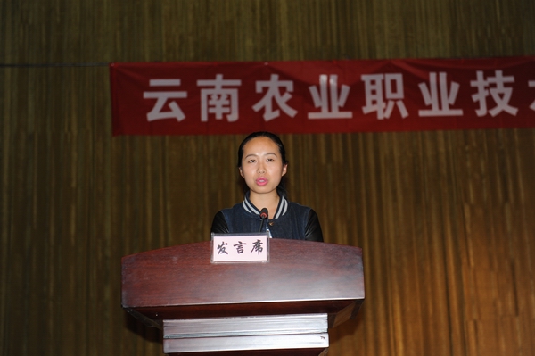 开学典礼上,畜牧兽医学院2013级施汝贤同学和经济管理学院2012级朱江同学代表全体在校学生对2014级新生加入农职这个温馨的大家庭表示欢迎。分享了自己在大学的学习、生活的点滴,以自身为经验,鼓励新同学勇敢地追逐梦想、朝着目标前进。园林园艺学院2014级伍文红同学和经济管理学院14级五年制郑雯兮同学作为新生代表发言。他们表示谨记“耕道养德 理想 开拓”的校训,努力学习、丰富知识、为祖国美好的未来拼搏奋斗。