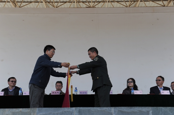 崔书记向民族干部学院一大队授锦旗