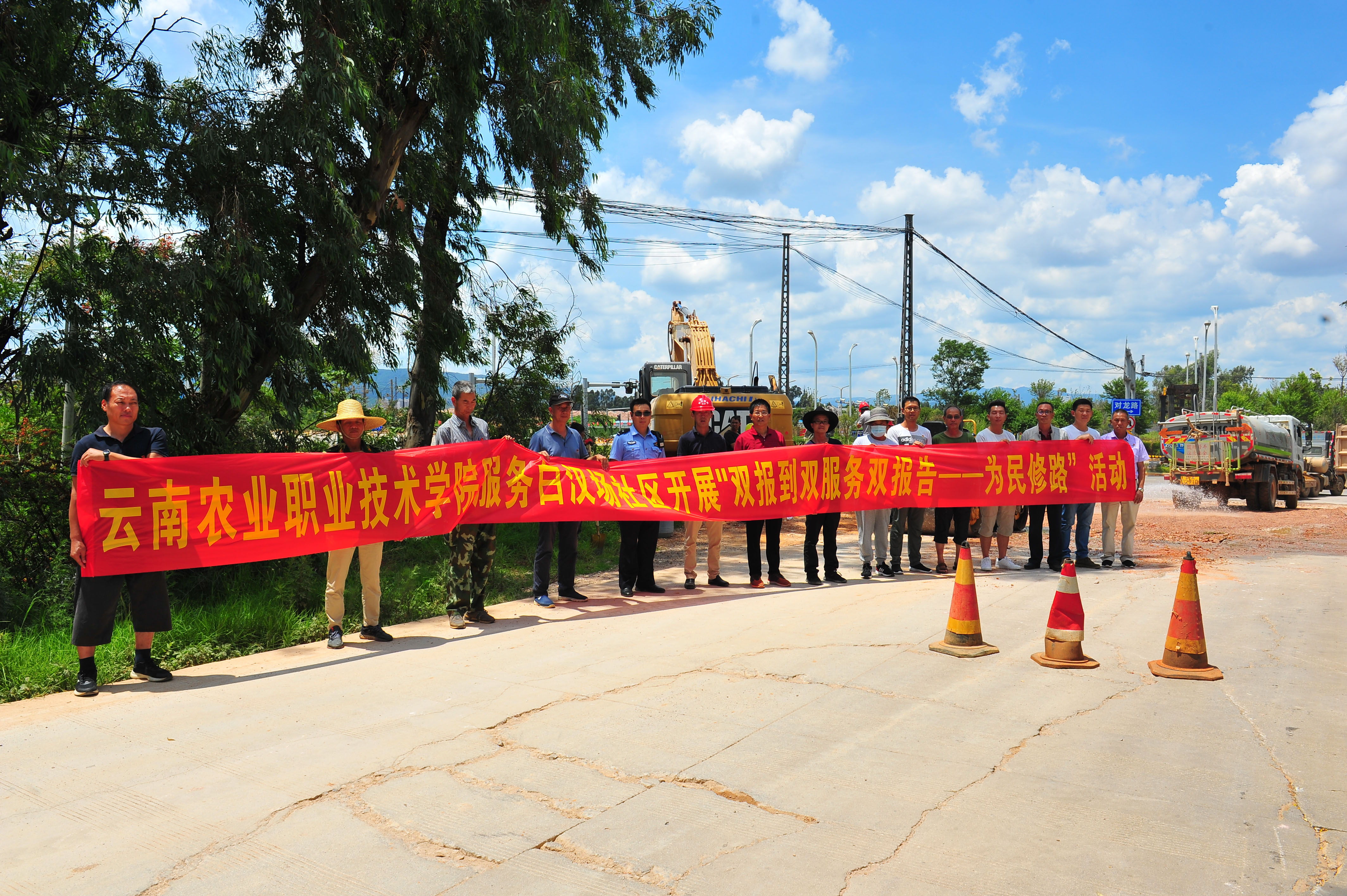 此次所修道路,是学院小哨校区所在的白汉场社区辖区内规化外乡村道路,是附近村民和周边单位出行的重要通道。该路段车流量大行人多,因长时碾压失修,导致路面坑洼不平,严重影响了周边民众的出行,并存在着较大的安全隐患。为有效解决当地群众和周边单位道路通行顺畅和正常出行,给其创造一个良好的交通秩序和道路环境,学院党委高度重视,2021年3安排后勤管理服务中心驻地交警等有关部门着手解决修路事项。我院1998级畜牧兽医33班校友云南尊达建筑工程有限公司法人马良同志知晓此事后,主动与校取得联系,积极明愿意承担修路重任回报母校和社会的决心。学院结合“双报道双服务双报告”进展情况,以及马良同志即是学院毕业生又是学院党员的实际,经商议决定以“学校+企业”的形式服务白汉场社区,联合开展“双报道双服务双报告——为群众办实事”活动。学院负责活动策划以及与白汉场社区等有关部门沟通协调,云南尊达建筑工程有限公司负责出资修路以及修路的具体工作。