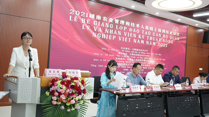 上午9点,结业仪式在茭菱校区举行,苏华伟副院长、培训授课的专家、各单位相关人员及来自越南九省的学员参加了此次线上结业仪式。结业仪式由云南省农业农村厅对外交流合作处胡新梅副处长(主持工作)主持。